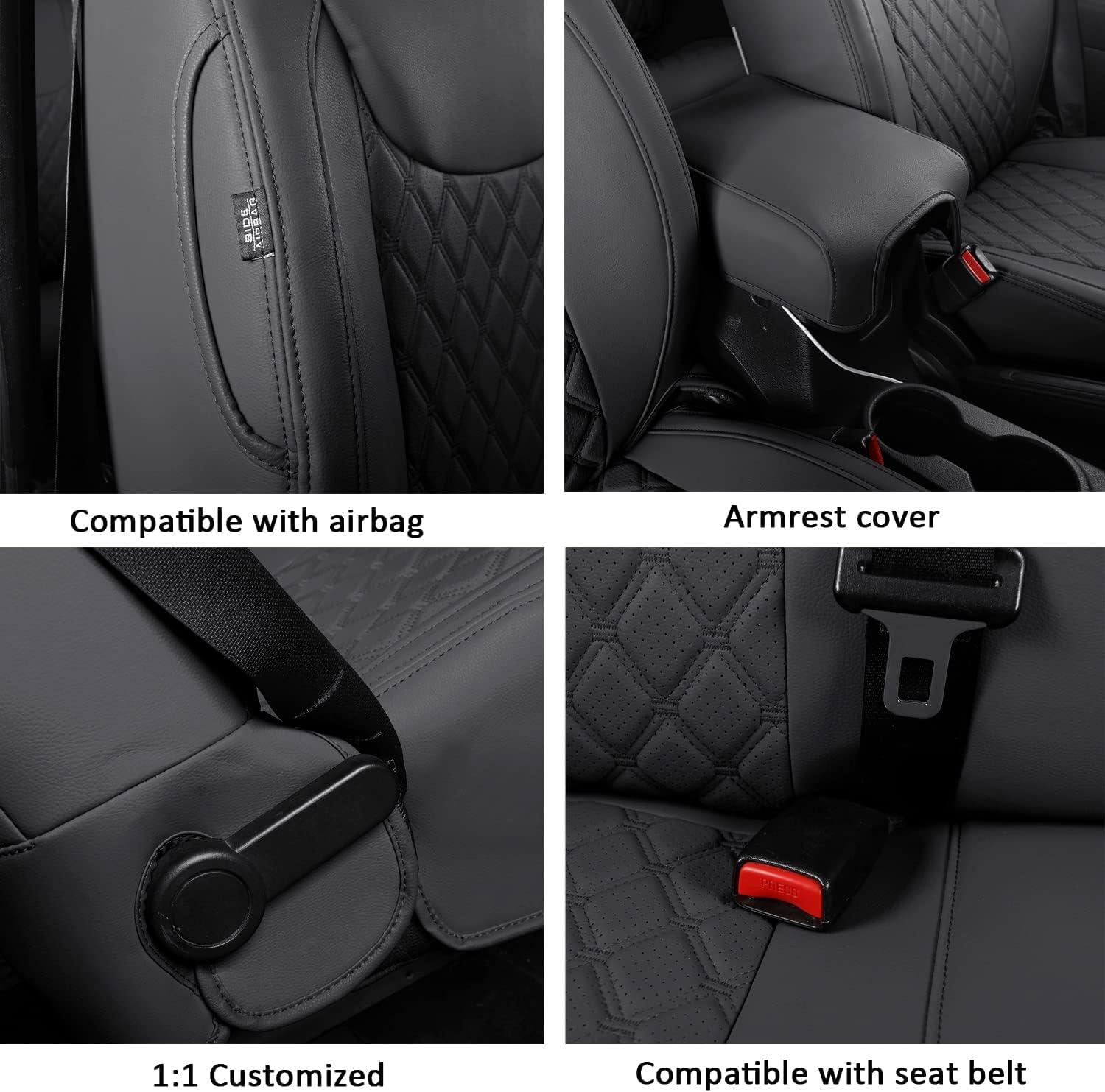 - ăQUILTED DESIGNă - Both of the front seat cover and rear seat cover show rich in stereoscopic vision with a diamond-shaped quilted design and stitching decoration, simple and stylish, and it can be perfectly integrated with your car interior.