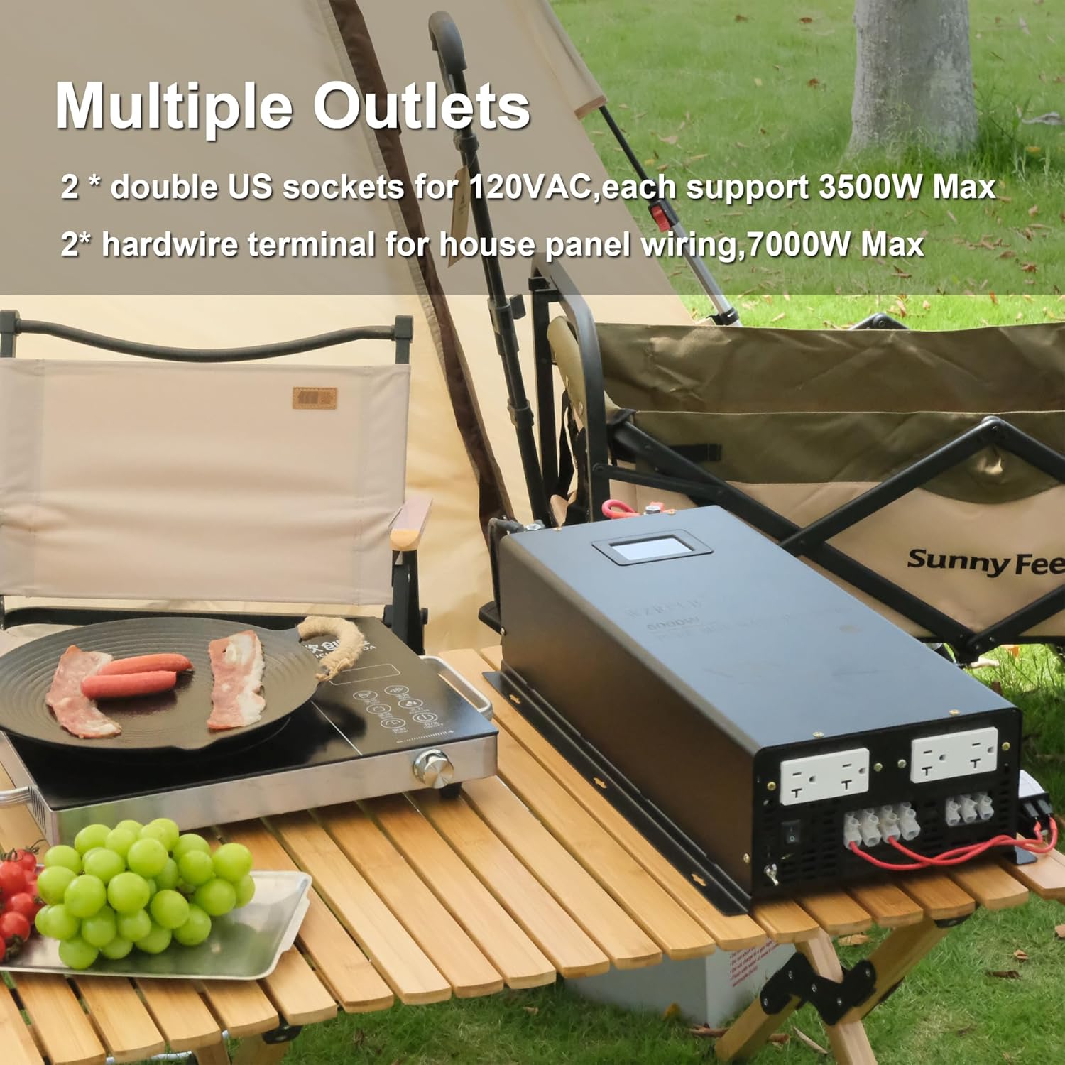 WZRELB 7000W Split Phase Pure Sine Wave Inverter, 48V DC to 120V/240V AC, 4 AC Outlets, Hardwire Terminal, High Efficiency up to 91.6%