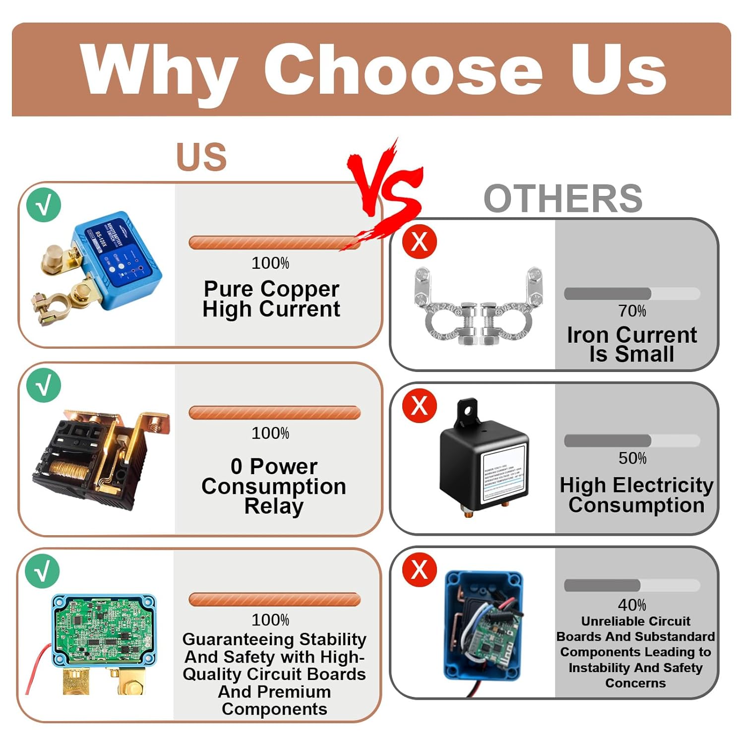 - Practical and Functional: When battery kill switch intelligently detects car battery leakage, it will automatically disconnect the battery main switch and lock 60% of the power for the next start the vehicle, thus to protect the battery and greatly extend battery life.
