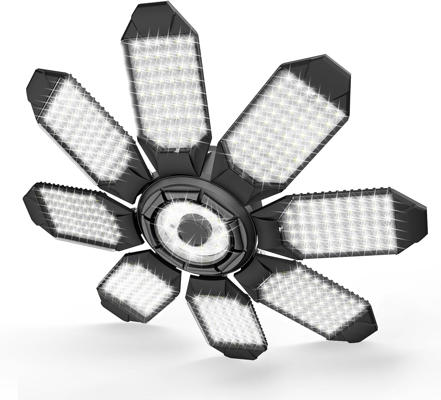 Led Garage Light - 20000LM Super Bright 6500K Garage Lights Ceiling Led w/ 8 Adjustable Panels Garage Shop Light Compatible for E26/E27 Socket Applicable for Workshop Barn Warehouse Attic
