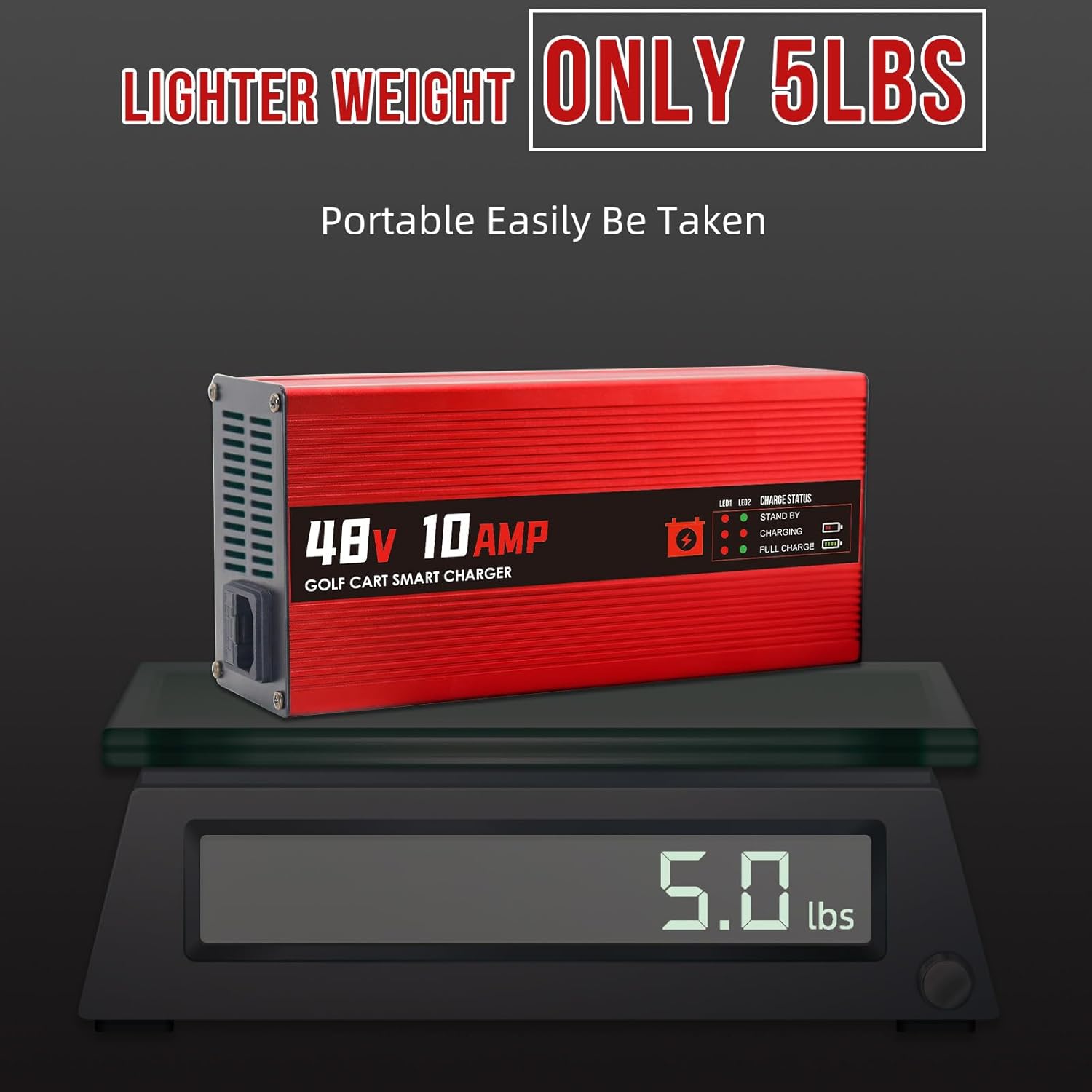 48V 10AMP Club Car Golf Cart Battery Charger for 48 Volt Golf Carts Lead-Acid Battery Smart Charger with 3-Pin Round Plug
