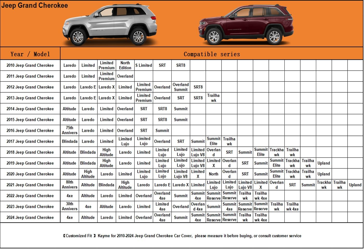 • 【Suitable for】— Custom fit for Jeep Grand Cherokee (2010-2025). Come with a large enough portable bag to store your cover when you do not use