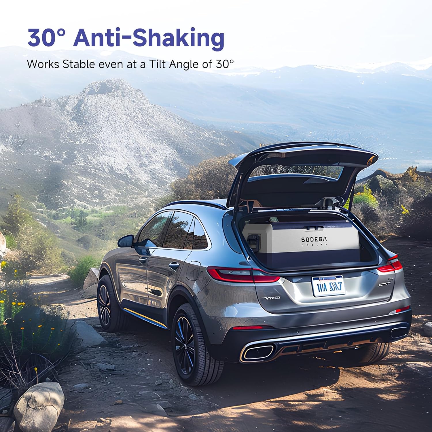 - Anti-Shaking: BODEGACOOLER 12v fridge provides a silent and comfortable environment for you.Because of its overall external smooth lines and equipped with a multi-functional non-slip base, the lateral displacement is greatly reduced. When your car is climbing at an inclination angle of 30 degrees, the car portable freezer can still run stably.Our portable car refrigerator allows you to enjoy cold drinks in stable and quiet during the trip