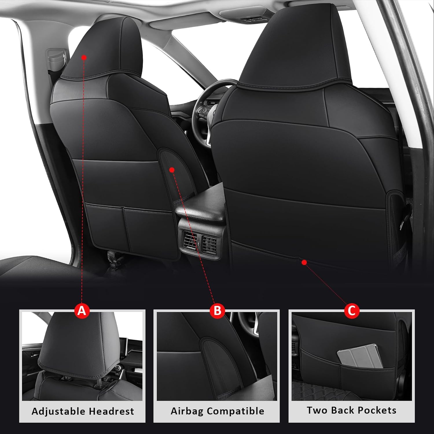 - Custom Fit: Seat Covers Compatible with 2019 2020 2021 2022 2023 2024 2025 toyota rav4 Non-Hybrid (Not for Adv & TRD-OFF,Black)