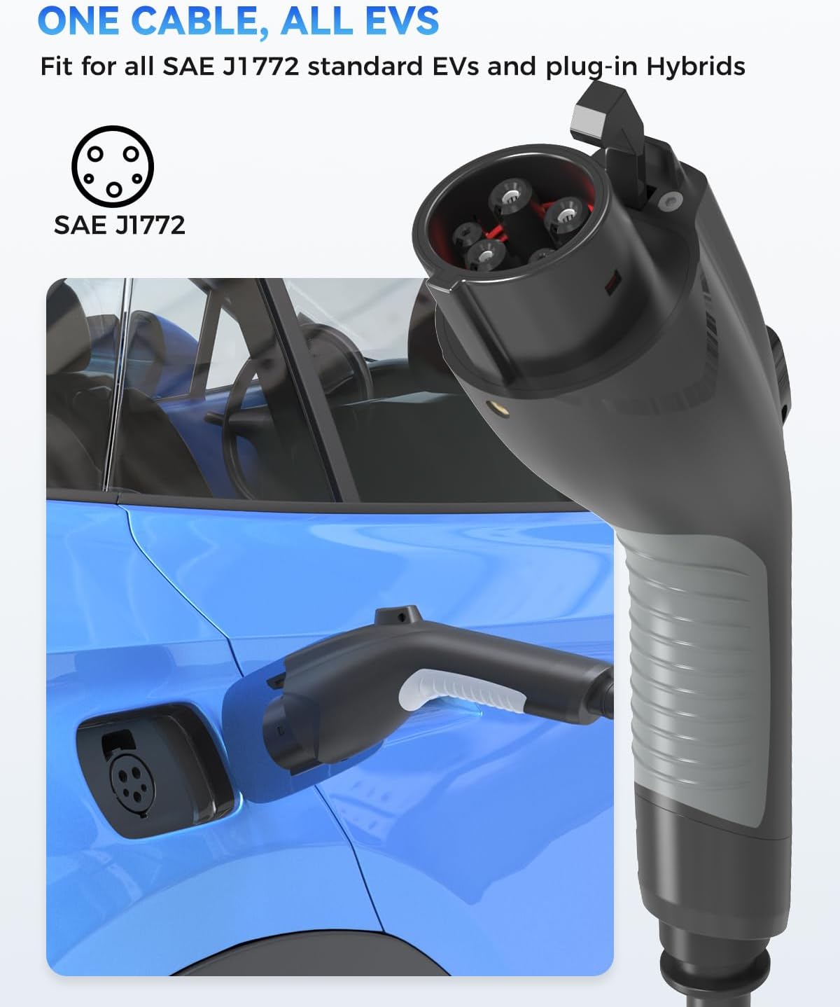 - 【Sturdy EV Charging Cable】Made from high-quality 100% copper TPE, with solid J1772 connectors, this ev charging extension cord is built for durability. Stronger than most, it lasts longer and is IP66 waterproof, making it reliable in any weather