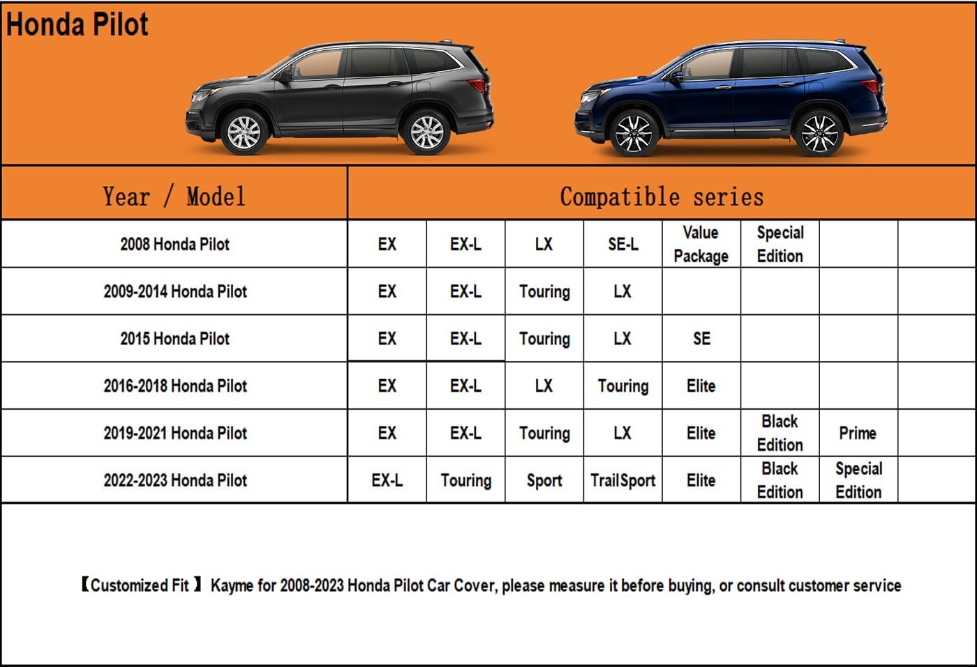 Kayme 7 Layers SUV Car Cover Custom Fit for Honda Pilot (2008-2025) Waterproof All Weather for Automobiles, Outdoor Full Cover Rain Sun UV Protection.Black