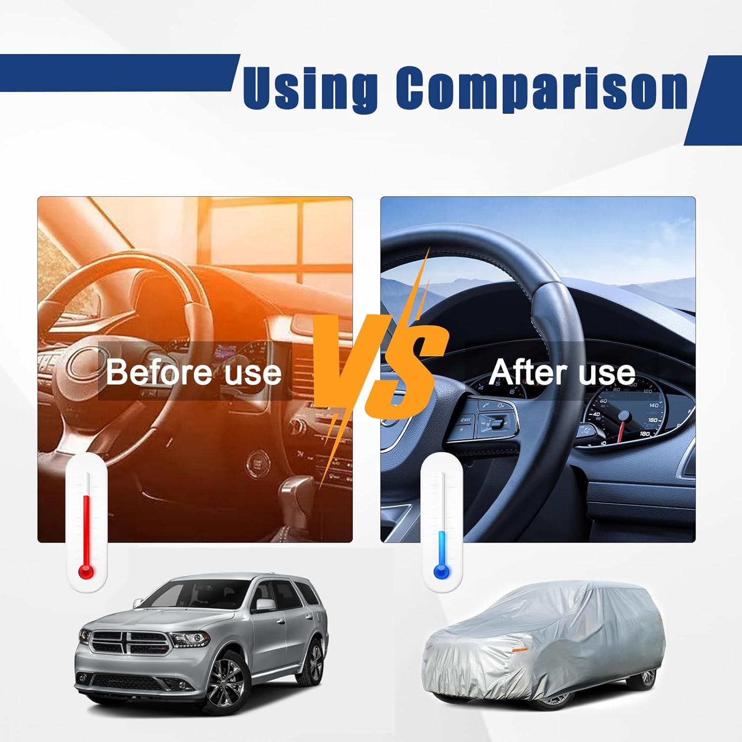 Kayme 6 Layers SUV Car Cover Custom Fit for Dodge Durango (2004-2025) Waterproof All Weather for Automobiles, Outdoor Full Cover Rain Sun UV Protection.Silver