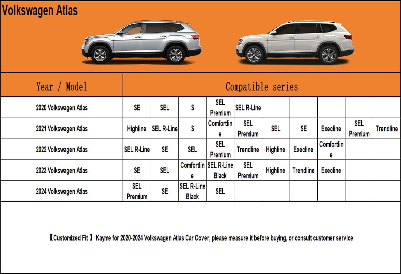 - ăSuitable forăâ Custom fit for Volkswagen Atlas (2017-2025) . Come with a large enough portable bag to store your cover when you do not use