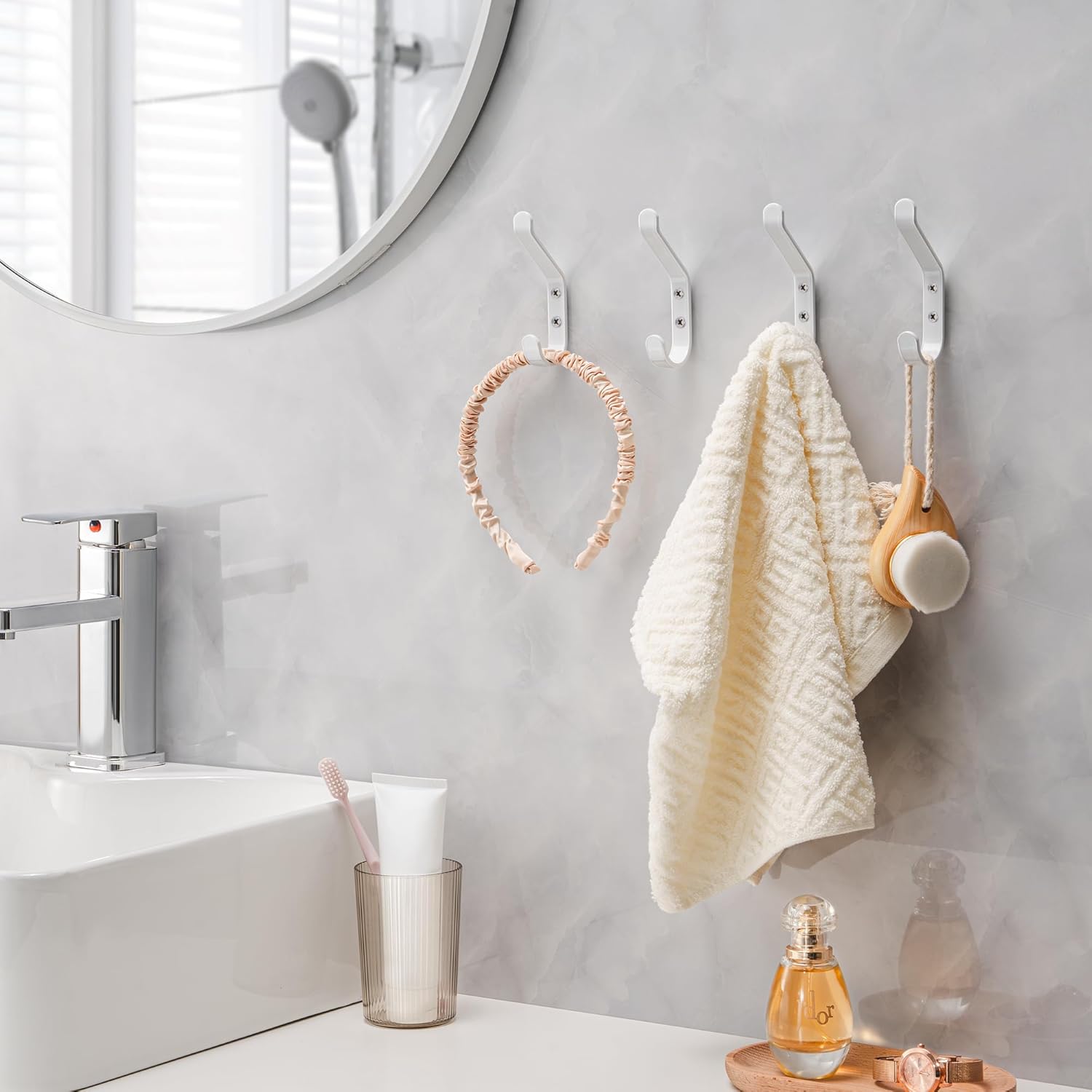Coat Hook for Hanging, 20LB (Max), Stainless Wall Hooks for Towel, Hat, Backpack, Key, Clothes, Wall Mounted Coat Hanger for Closet, Metal, White, 4 Pack