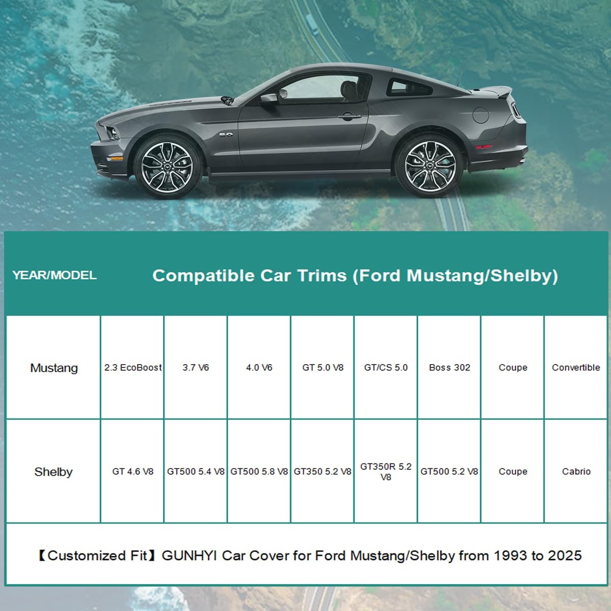 - 【Compatible with】This Full Car Cover Custom fit for Ford Mustang/Shelby from 1964 to 2025. Comes with a microfiber towel that you can use to clean your car, because if there is sand on the surface of the car before use, it may damage the paint.