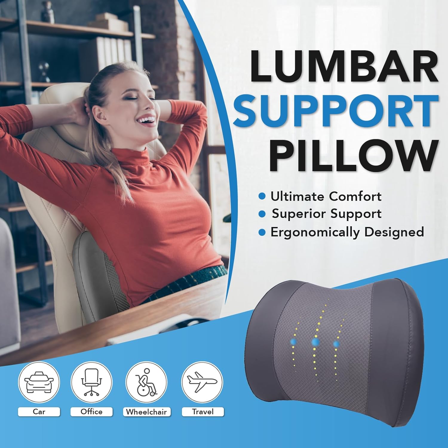 - Superior Comfort & Excellent Support - Lumbar support pillow uses high-density memory foam to ensure strong support and enduring comfort. Car lumbar support for driving or working, it relieves lower back pain and offers all-day comfort