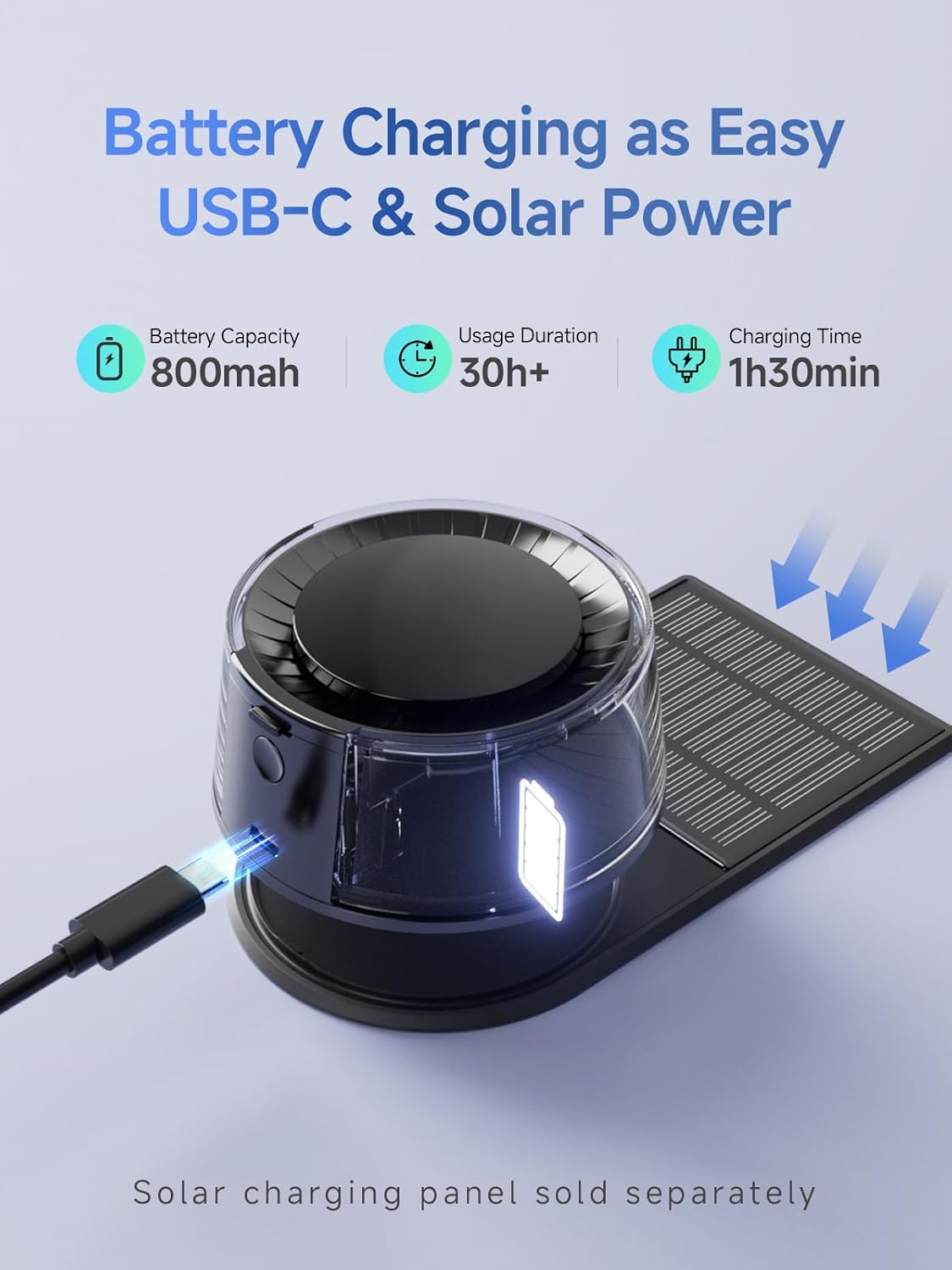 - 【Flexible charging】Car fresheners features an 800mAh lithium battery, supporting type-C and solar charging. Fully charged, can be used continuously for 30 hours, Solar power completely eliminates the hassle of manual charging!