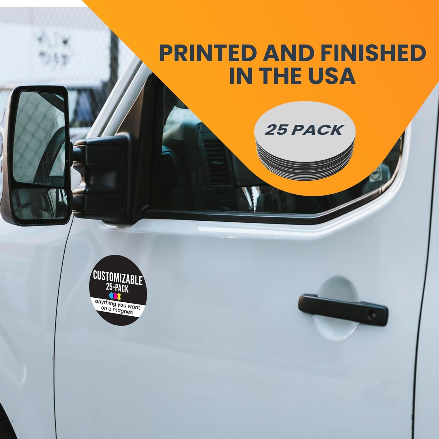 Magnet Me Up Customizable 30 Mil Round Magnet- 5”, 25 PK Weatherproof Car Magnet for Businesses, Sports Teams, Fundraisers & Personal Expression- Custom Text & Logo- Strong Magnetic Vinyl for Vehicles