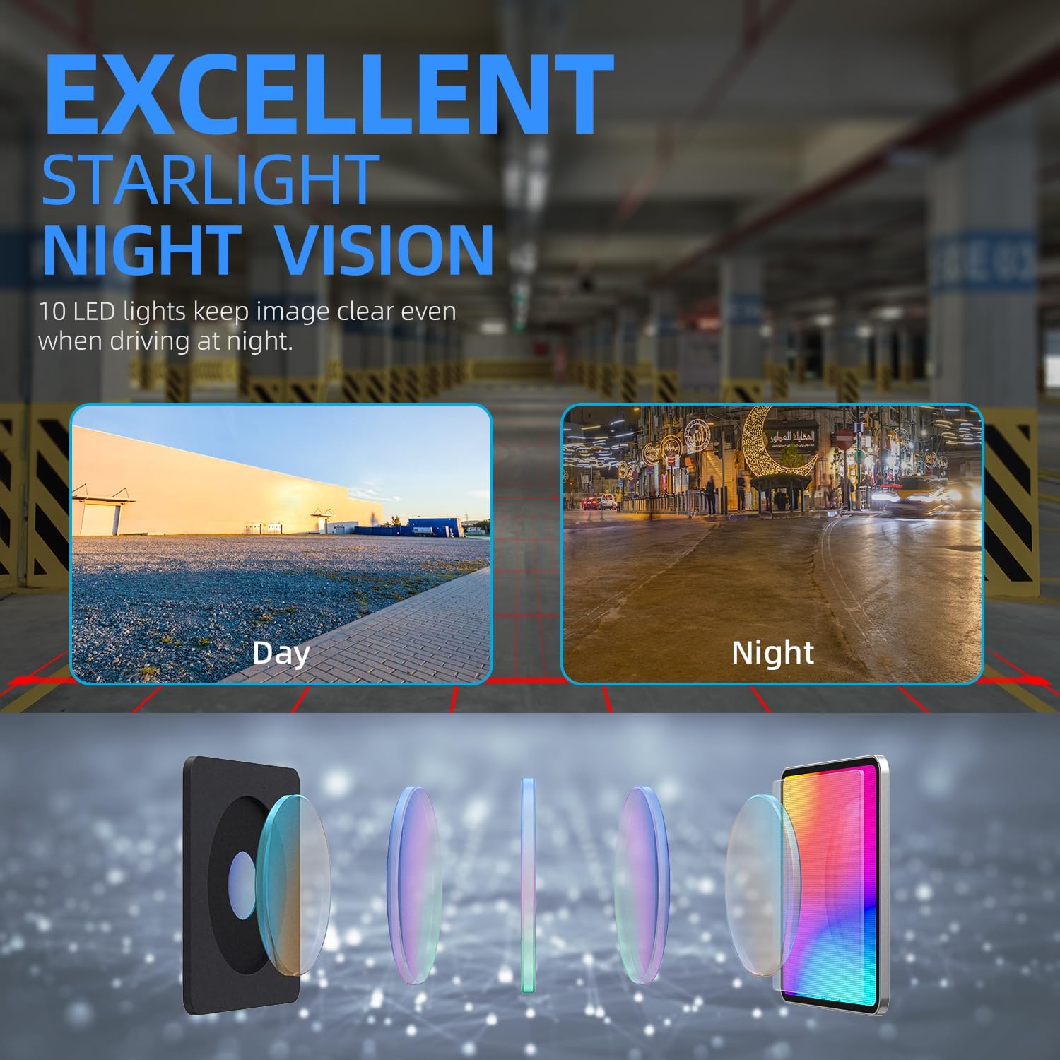 - Excellent Night Vision Function: 149 Β° angle of view of the reversing camera design, high transmittance glass, F/1.5 aperture, camera has a strong output of pixels and night vision performance, and continues to provide high-definition images, to ensure driving safety at night .