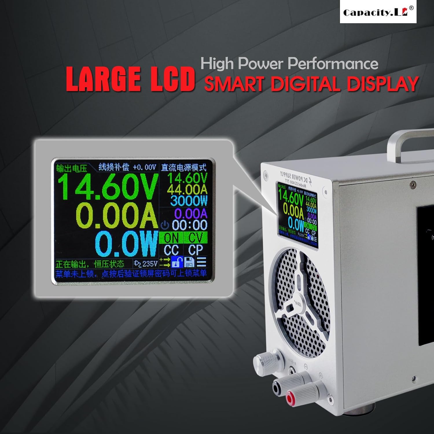 - EASY TO CONTROL & DUAL SCREEN DIGITAL DISPLAY: High power lifePO4 battery charger with adjustable voltage 0-60V & current 0-50A, Multi modes are all in one control switch, easy to control charging. Equipped with a dual screen digital display design, accurate to the last two decimal places, more precise, clear, and convenient for adjustment and viewing.