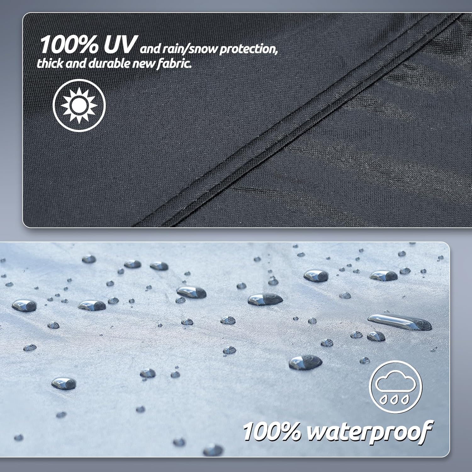 - ăWind-Resistant DesignăThe car cover waterproof all weather has been specially designed to resist strong winds. â Equipped with two bungee cords, which only take a few seconds to tie to the tires on both sides, it securely covers the front and rear of the car. ⥠There are specially designed windproof straps at the bottom to pass through the car's middle to ensure that the cover is not blown away. ⢠The adjustable elastic hem makes it easy to adjust the size and fix the car body.
