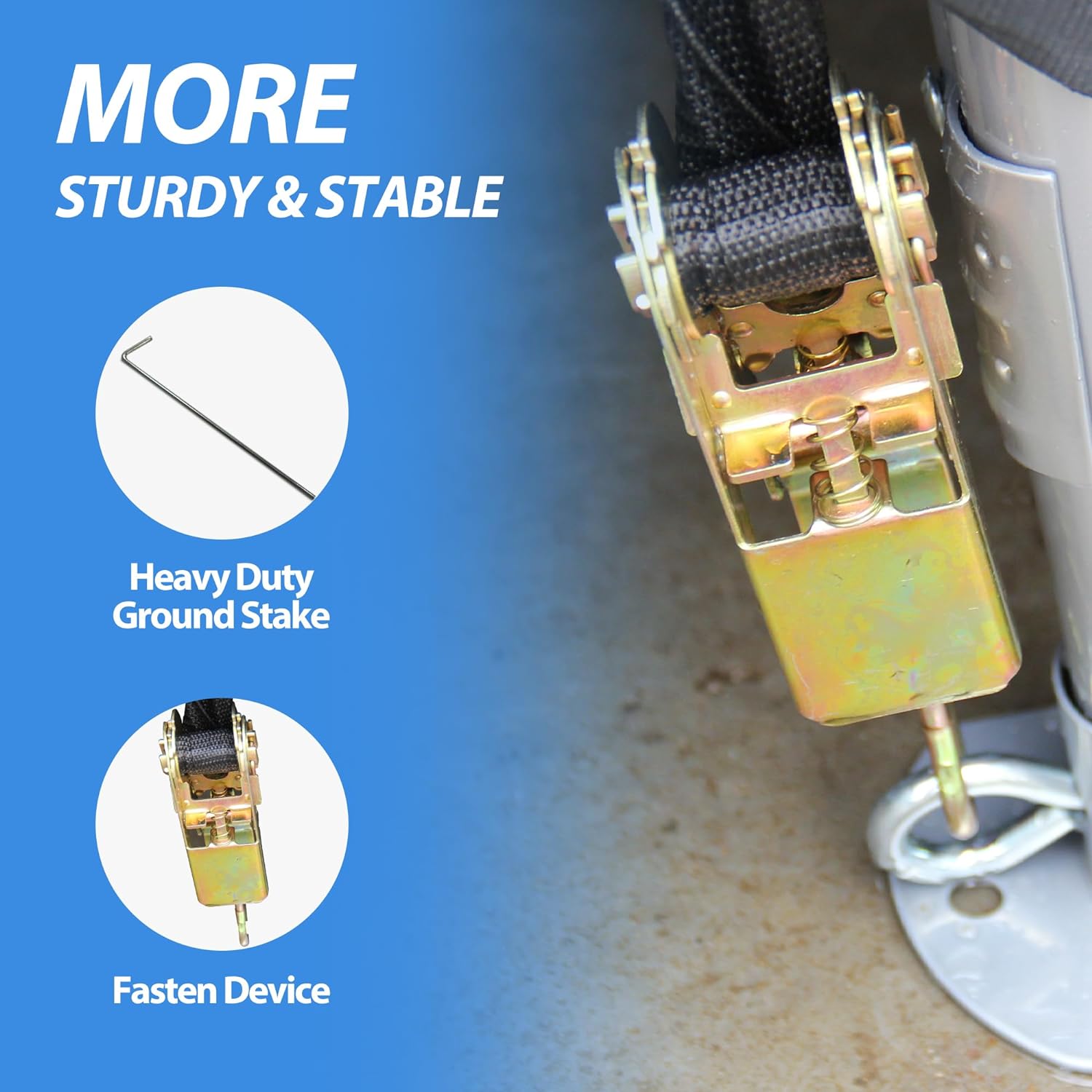 - โFor long term use and safety, please make sure to use rope, ground anchors for stability.If you want to place it on the grass for a long time, you need to pour cement around the legs and fix it with expansion screws to ensure stability. (Expansion screws need to be purchased by yourself. )