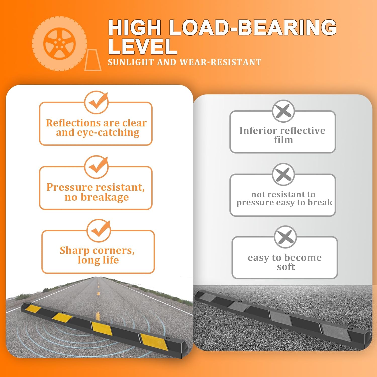 - ๐๐๐๐ ๐๐๐๐๐๐๐๐๐๐--The garage wheel stops 8 double-sided reflective markings can effectively grab your attention during day or night, reversing/positioning in both directions is safer to avoid accidents.