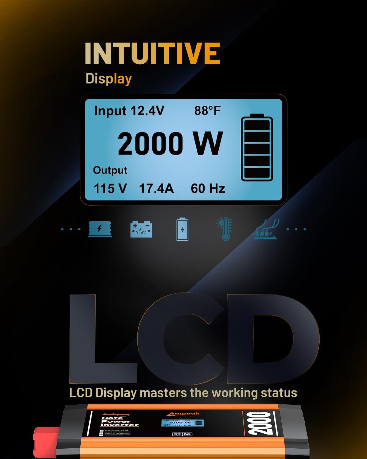 - 30-Day Hassle-Free Return and an 18-Month Replacement: Customer satisfaction is our eternal pursuit. Whether you're looking for power inverters for vehicles or simply need a reliable power source at home, the Ampeak 2000w power inverter is the perfect solution for you.