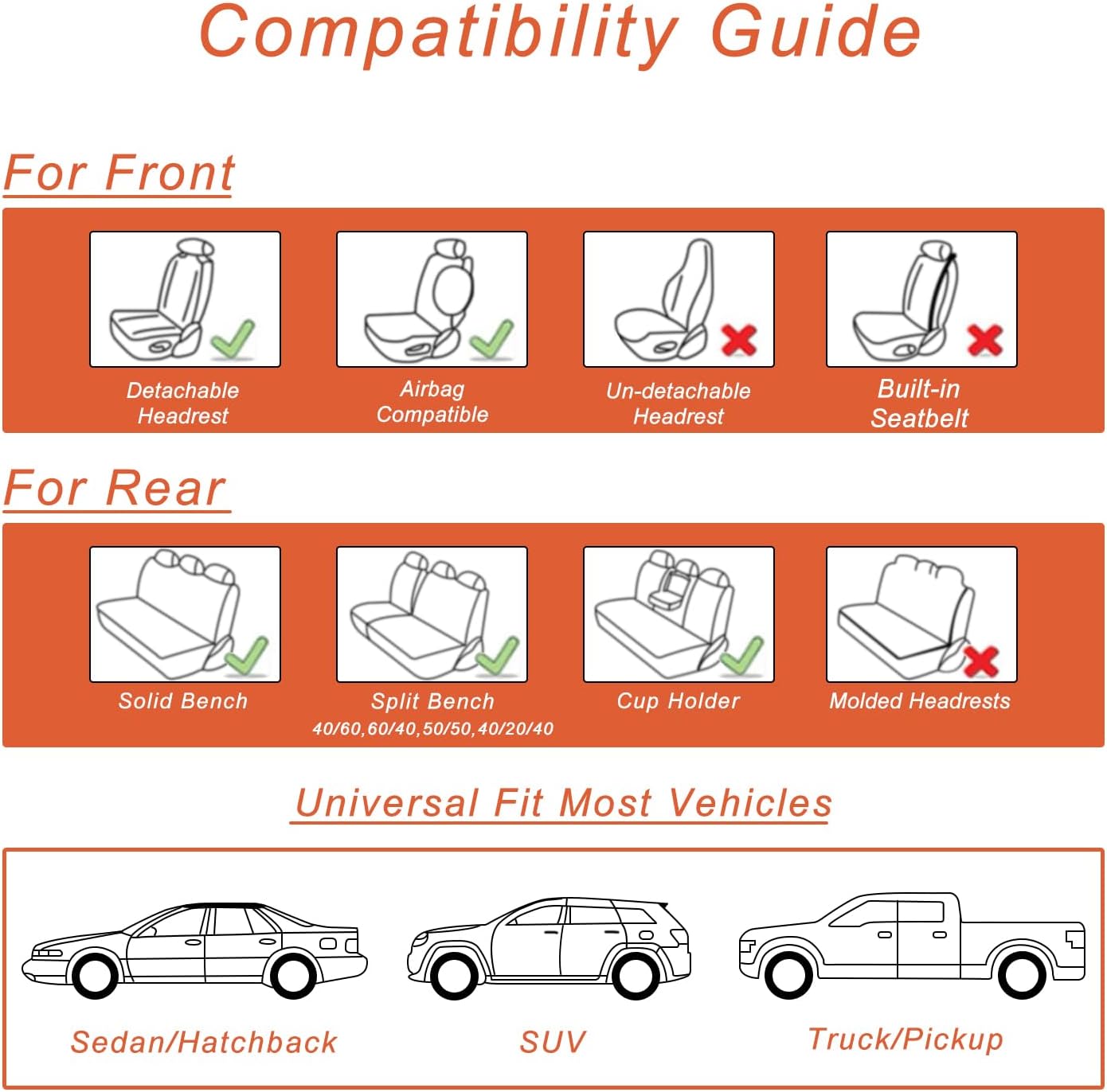 - Unique Rear Design Easy to Install: Rear seat cover has no-insertion buckle and chuck design, which distinguishes it from the traditional installation method, and does not need to lift up the rear seat to complete the installation, which is faster and more convenient.