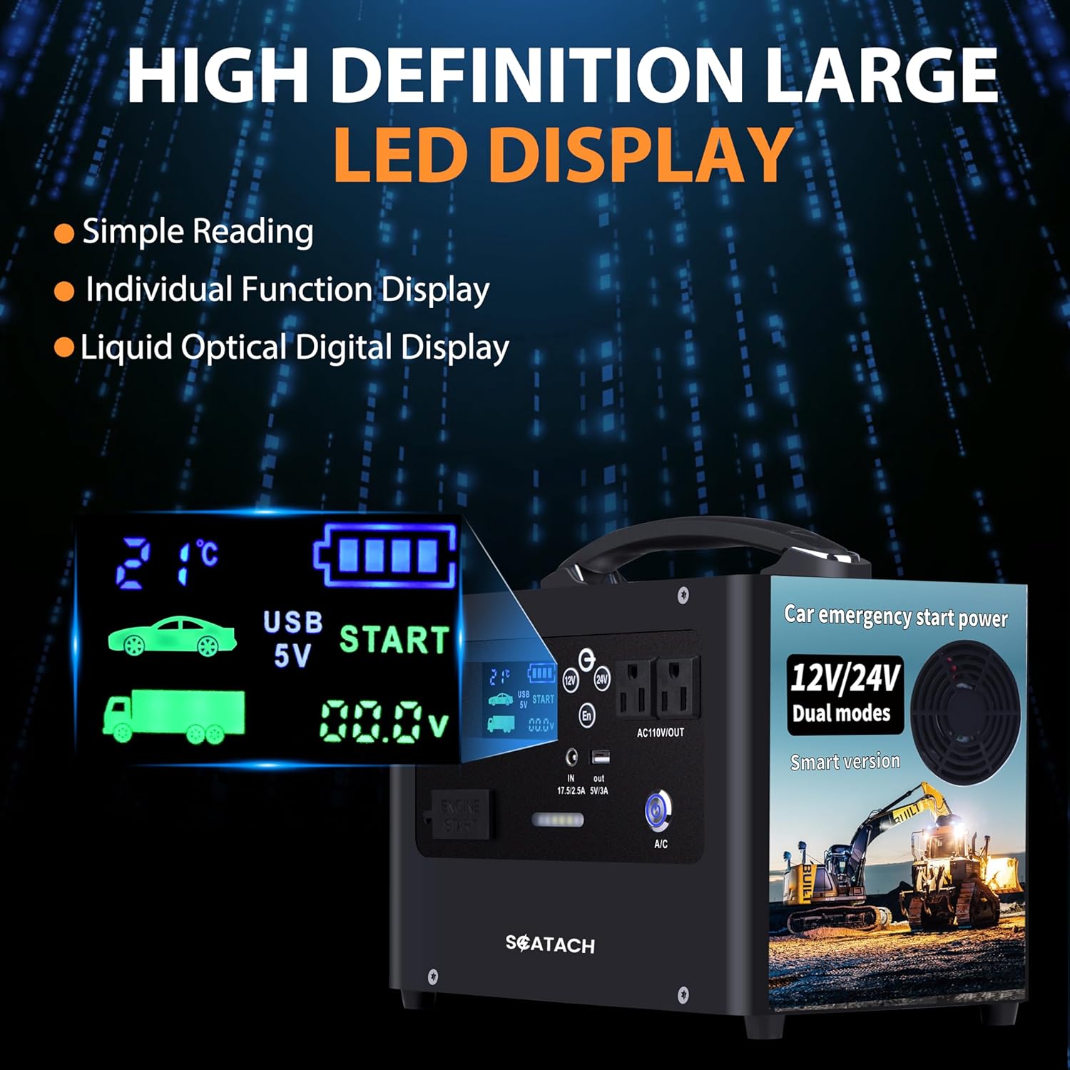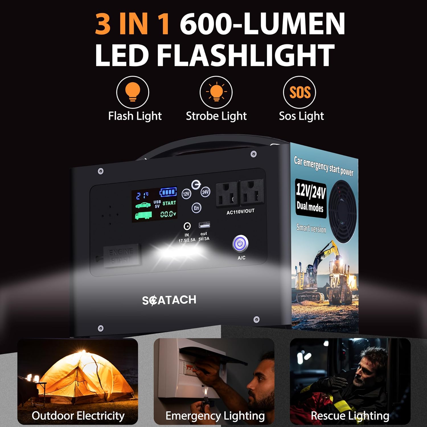 - Portable Power Station: Its portable design makes this heavy duty jump starters perfect for on-the-go use, making it a must-have accessory for any vehicle owner.The built-in ultra-bright 400 lumen LED light offers three modes: illumination, flash, and SOS, providing light and emergency signaling capabilities.