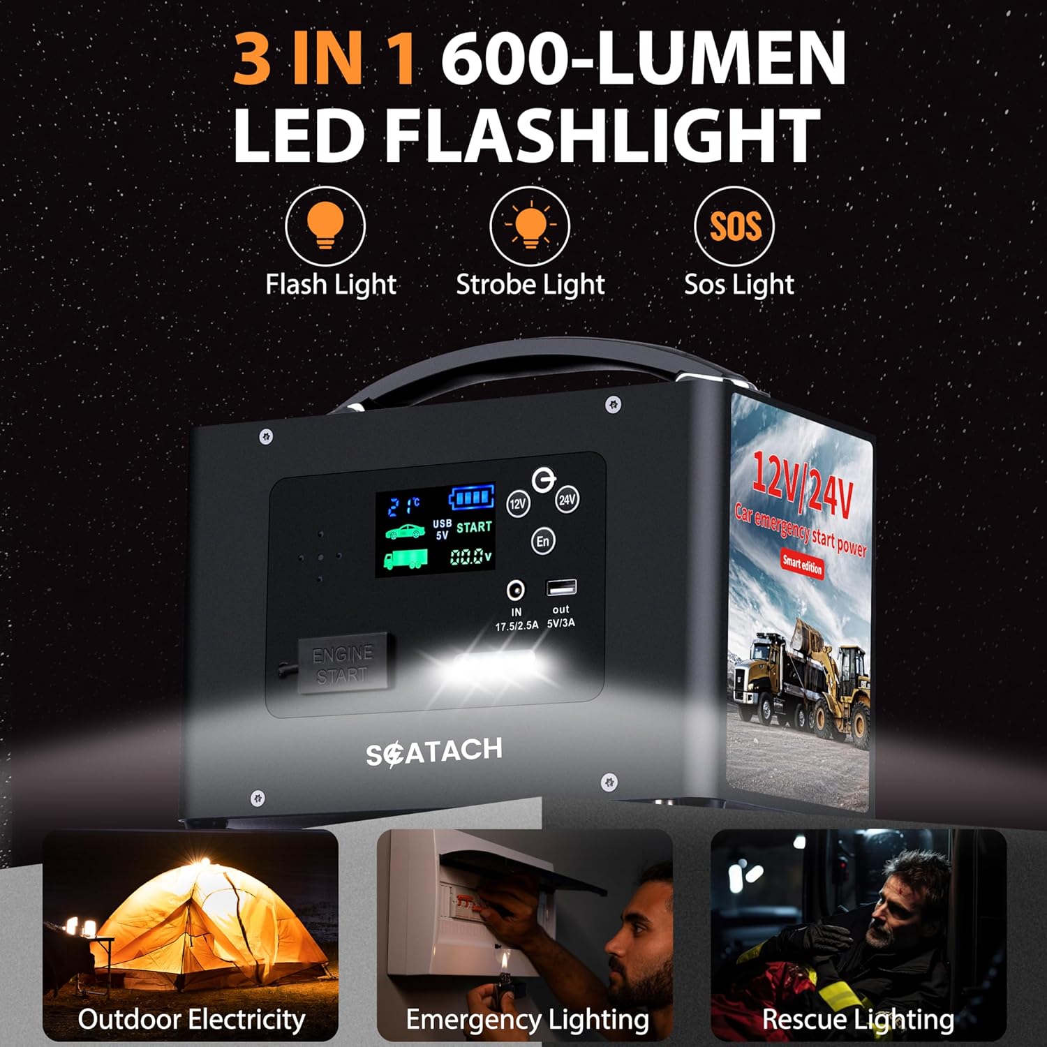 - Portable Power Station: Features a 155WH battery jumper starter for charging small household appliances. Also includes a 5V/3A output USB port for quick charging of cell phones and tablets, function as a portable power bank.