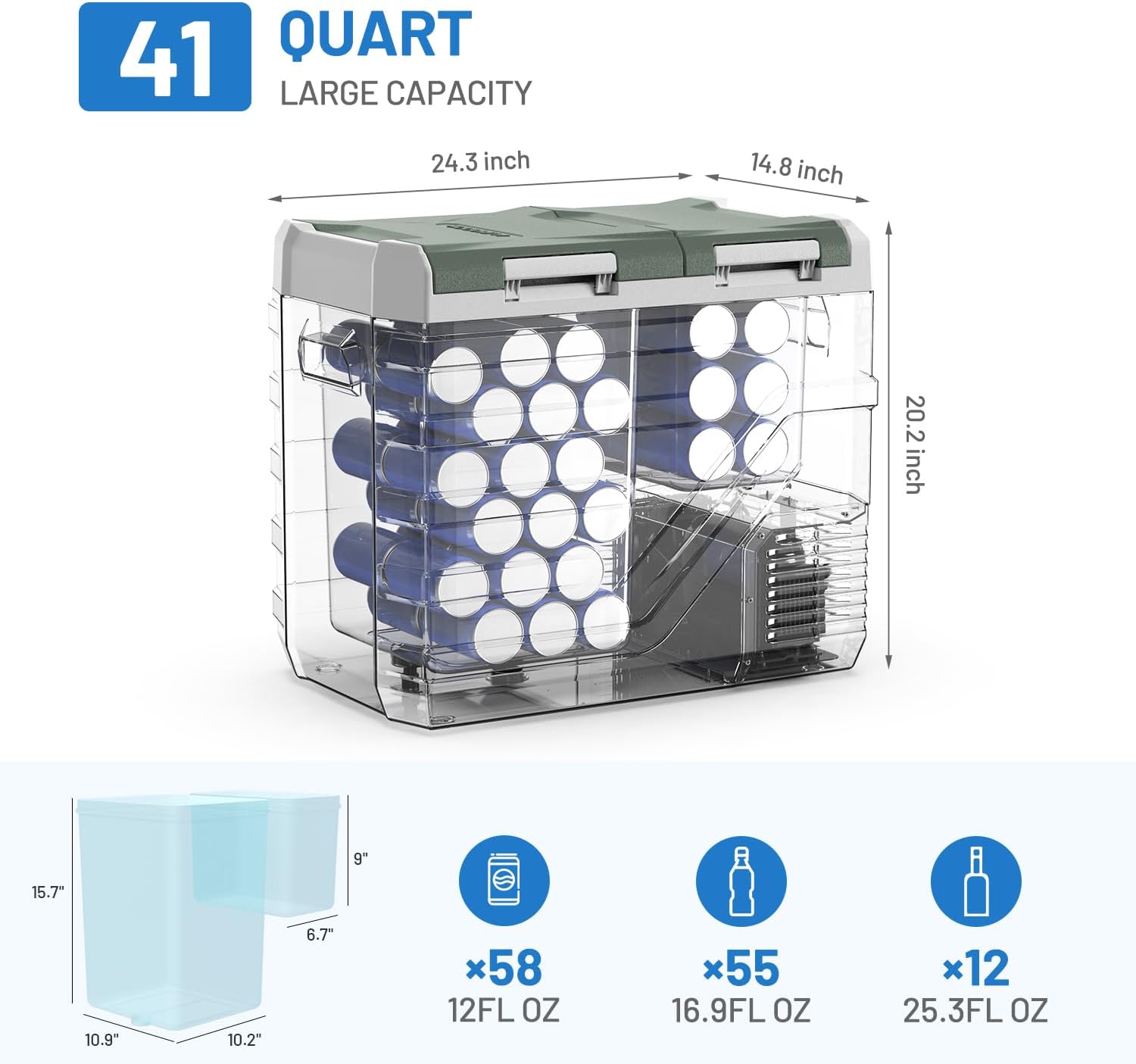 - LARGE CAPACITY & 2-WAY DOOR: Our car refrigerator is equipped with an expansive 25 quart capacity, which can hold up to 58 cans of cola (12fl oz) or 55 bottles of water (16.9fl oz) or 12 bottles of wine (25fl oz), allowing you to enjoy chilled beverages and fresh food during the trip. This 12 volt car fridge is designed with two doors with different opening direction, which make it convenient for you to access from any angle.