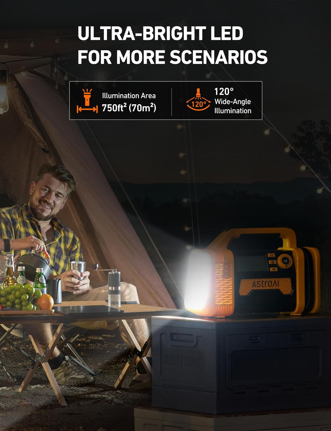 - Ultra-Bright LED: This inflator’s 3-mode LED flashlight can illuminate a 100ft² (9.29㎡) area, providing 600 lumens of illumination. Coupled with its large screen, this inflator is convenient to read and operate at night.