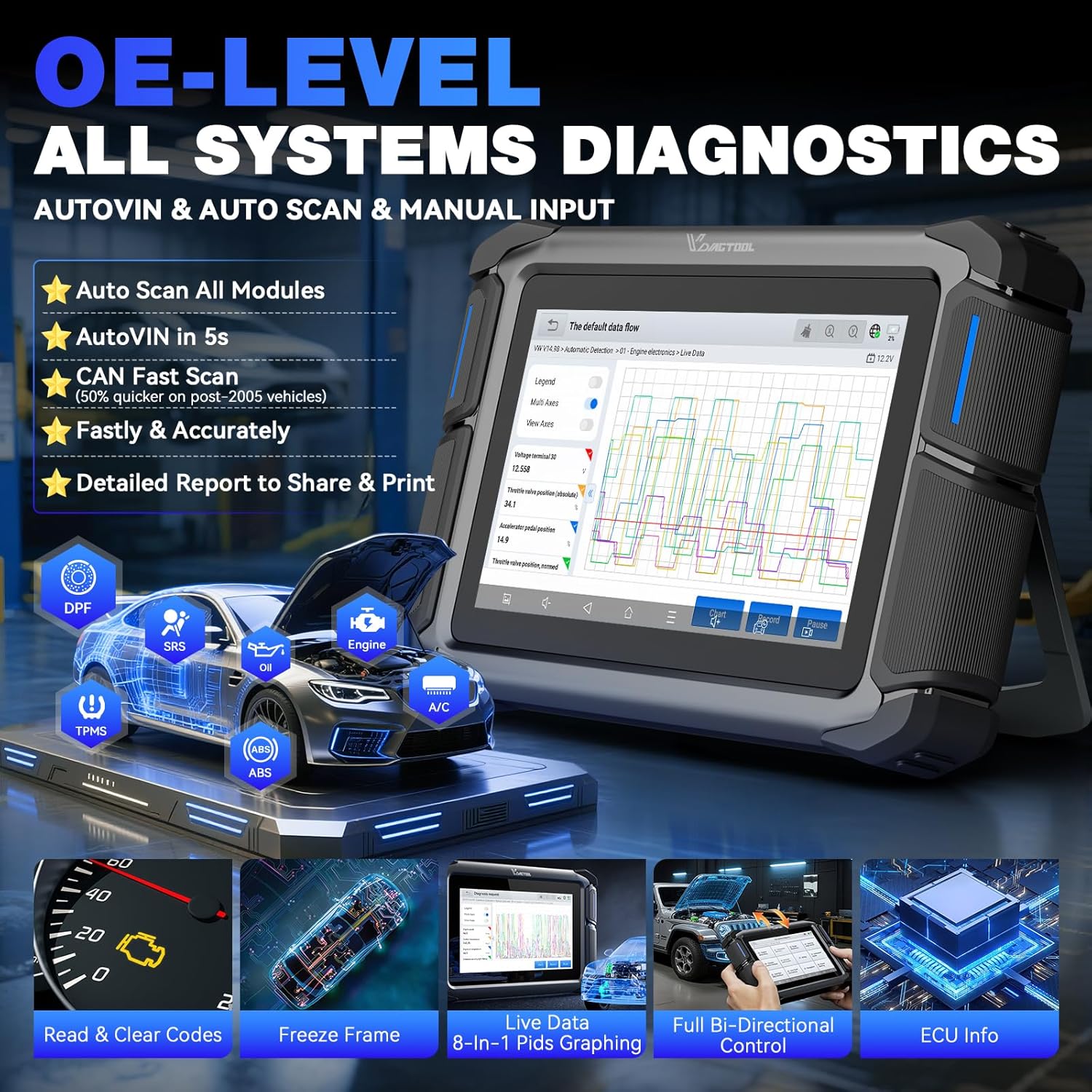 - Your Efficient Solution for Car Maintenance: The 2025 VD70 OBD2 Scanner Diagnostic Tool is designed by a professionals for automotive technicians, workshops, and DIY enthusiasts, ensuring no unnecessary costs are added to the price. It provides OE All Systems Diagnostics, 36+ Reset Functions, Bi-Directional Control, and ECU Coding, etc. With 2+64GB storage, an 18.25Wh battery, and 3 years of free updates, it’s built for both immediate and long-term use, offering dependable support for a wide range of vehicle maintenance tasks.
