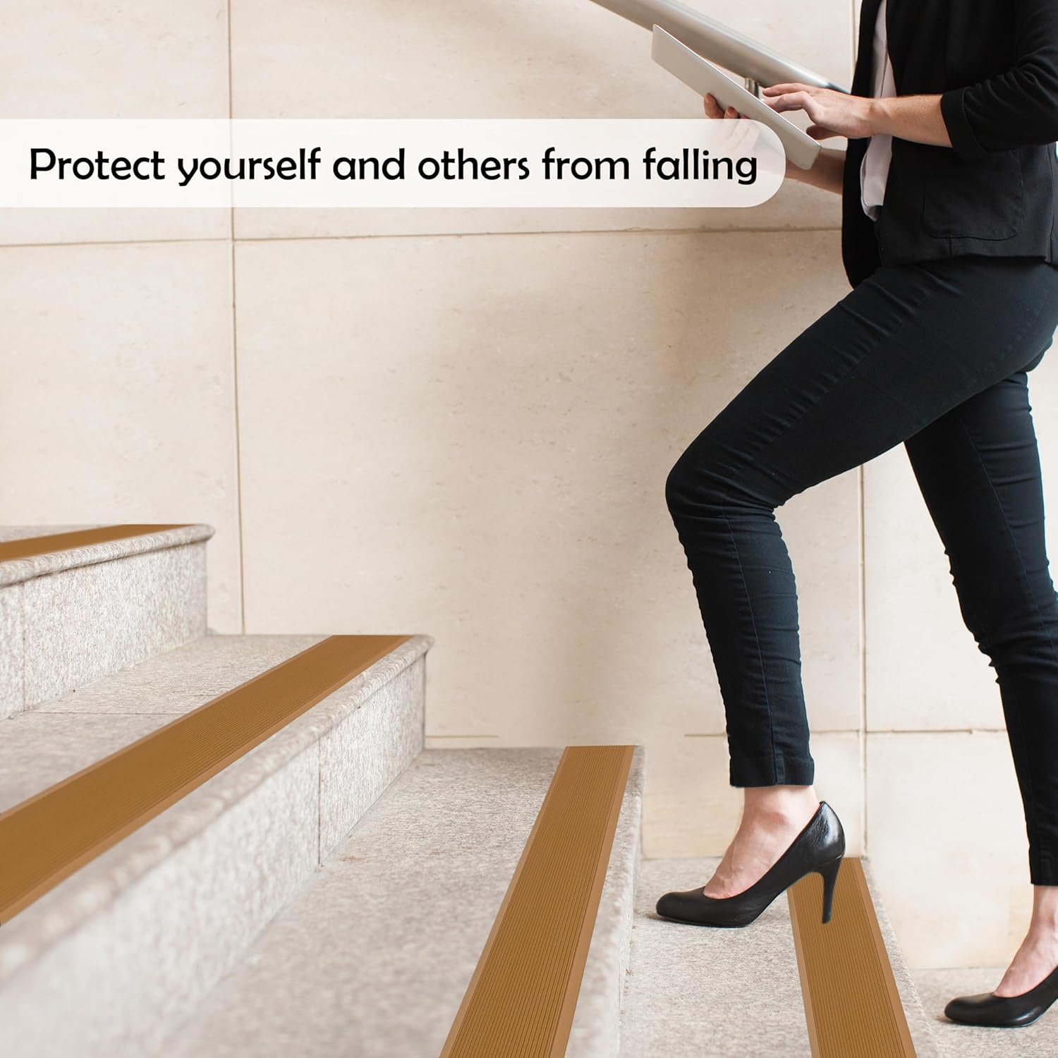 Rubber Bond 4x36in Anti Slip Stair Treads (15-Pack) - Waterproof Outdoor/Indoor Heavy Duty Non-Skid Tape for Stairs - Adhesive Rubber Grip Strips for Steps & Ramps - Brown