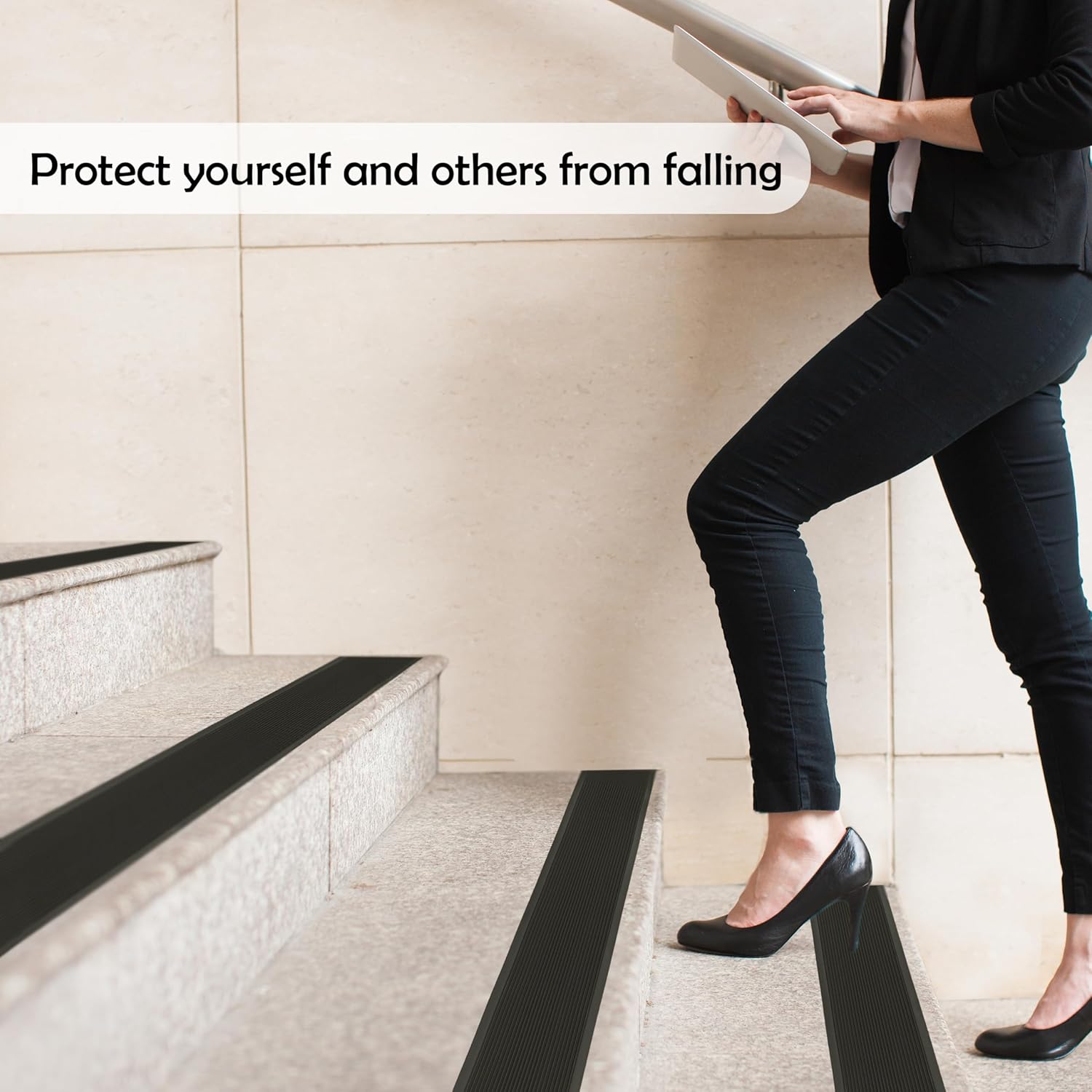 Rubber Bond 4x36in Anti Slip Stair Treads (5-Pack) - Waterproof Outdoor/Indoor Heavy Duty Non-Skid Tape for Stairs - Adhesive Rubber Grip Strips for Steps & Ramps - Black