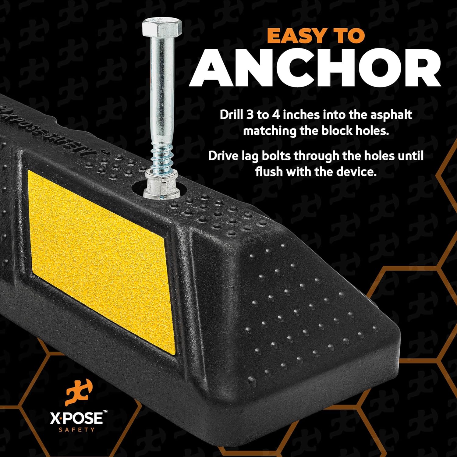 - NEW & IMPROVED DESIGN -- New and improved car stop parking bumpers upgraded with countersunk holes for easy semi-permanent installation. ENHANCED VISIBILITY -- White or yellow reflective indicators on the parking bump guide you to the perfect spot in any lighting.