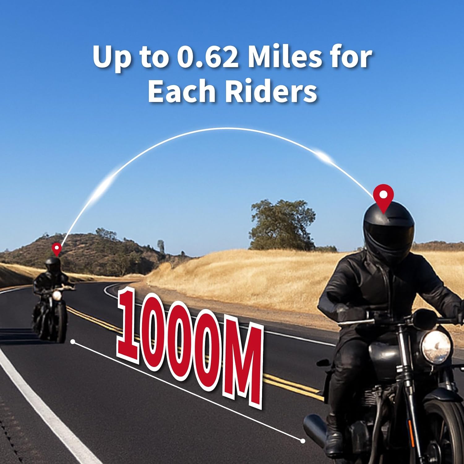 - 【Long-Range (Up to 1000m) Intercom and Music Sharing】Take your riding experience to the next level with the BIKECOMM SALUT Bluetooth headset for motorcycle helmet. With SALUT, not only you can easily converse with your fellow rider at a distance up to 1000m away, you can even share music with them. It supports connectivity with third-party brands, so that you can share information, chat, and music with your riding partner make every moment a joy ride together!