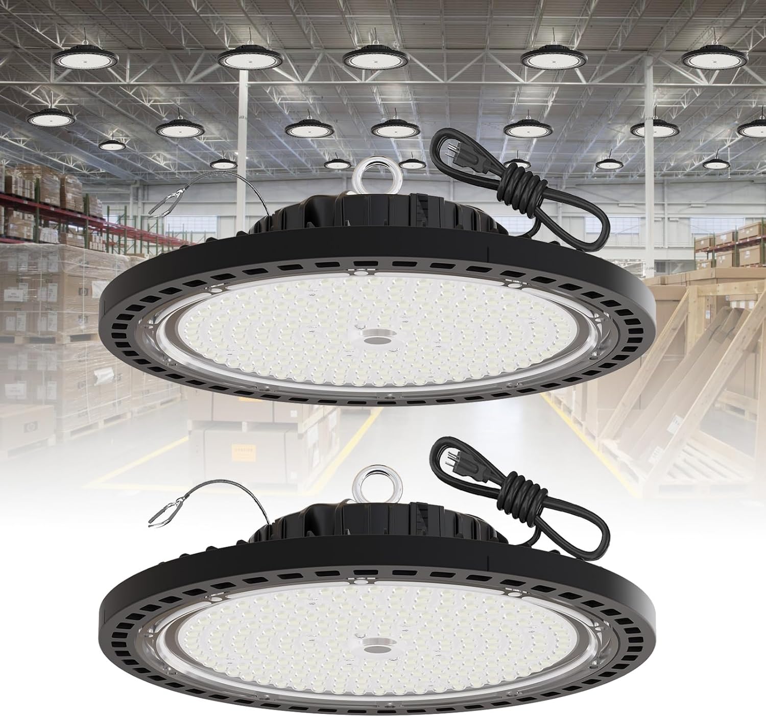 2 Pack UFO LED High Bay Light 250W, 35000 LM, 5000K with 5ft Power Cord, US Plug, Bright LED Shop Light for Basement Commercial Factory Garage Lighting, IP66 Waterproof, AC110-277V, ETL Listded
