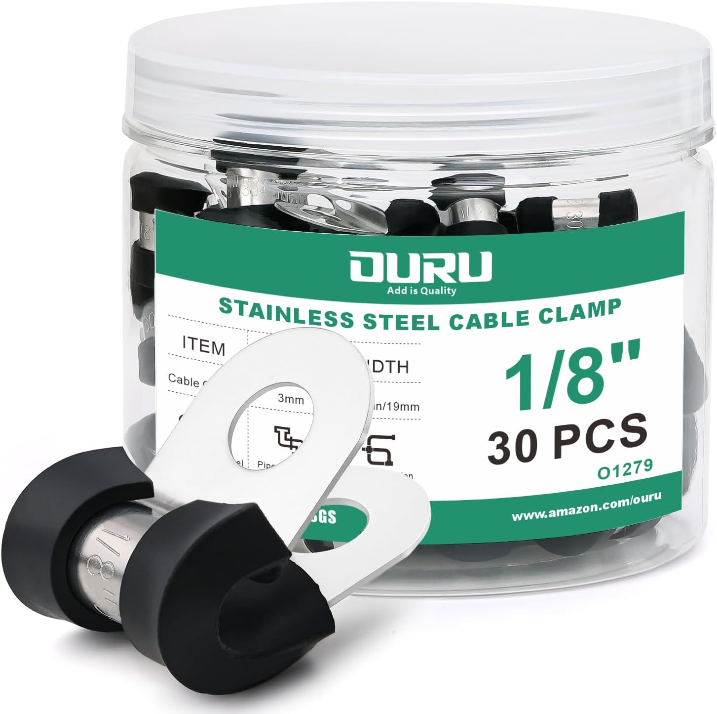 - OURU Insulated Cable Clamps Kit โThe stainless steel hose cable clamps box set contains 30PCS 1/8" p-clamps.Fit for 6M( 1/4 inch) screw bolt to through the screw hole