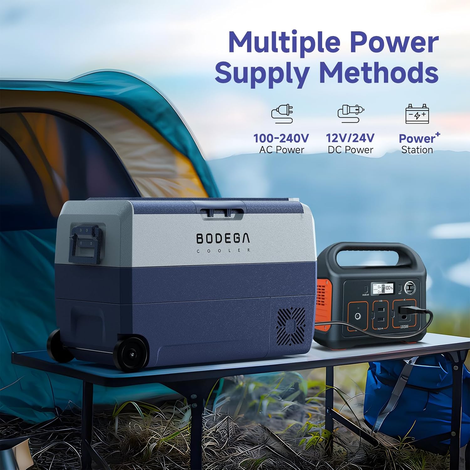 - We have a professional technical support team responsible for the portable dual zone car freezer.BODEGACOOLER car fridge 12v is equipped with 120/240V AC and 12/24V DC adapters, which can be used at home or in the car.The RV freezer line length is about 2.6m.
