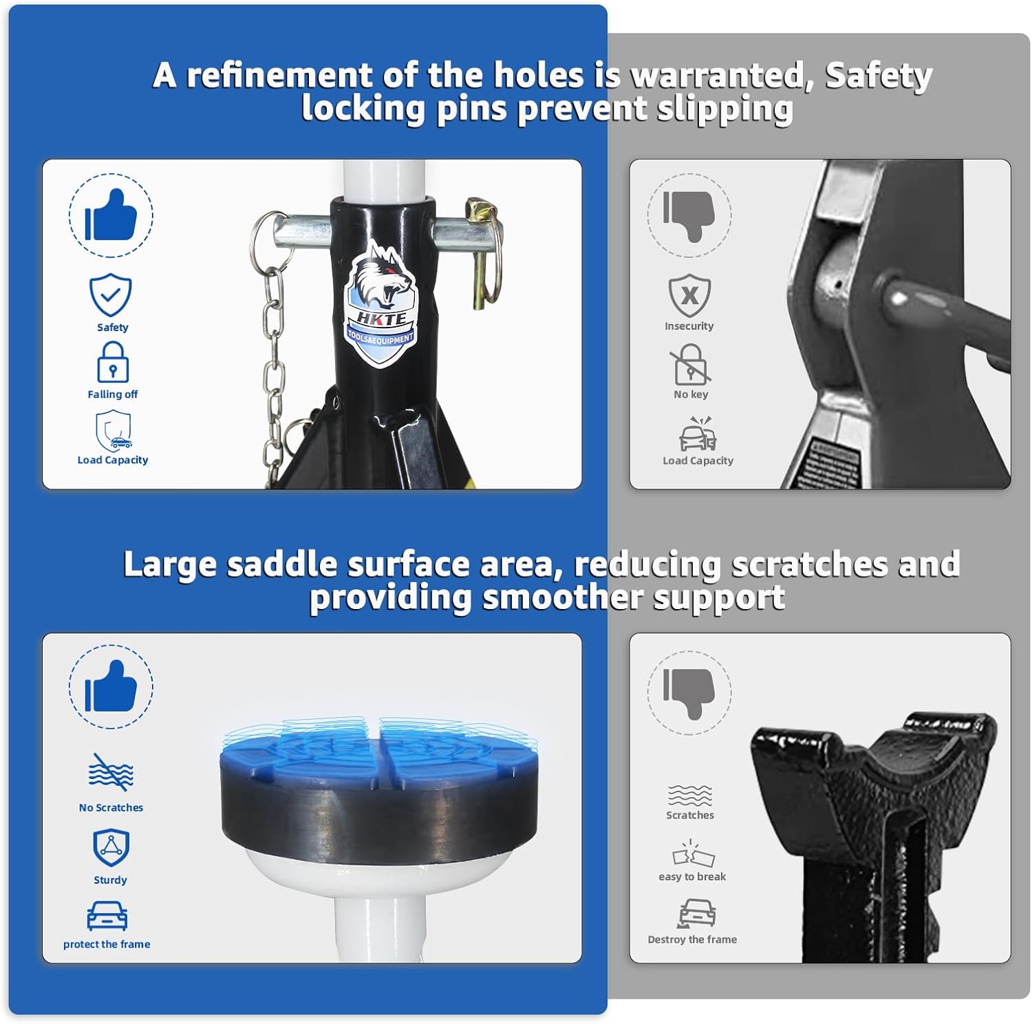 - HKTE jack stands feature a distinctive design with circular base pads and a flat top rubber saddle, offering superior protection to your car frame compared to traditional curved axle post stands. These stands prioritize maximum stability and safety, complemented by removable and replaceable non-slip pads.