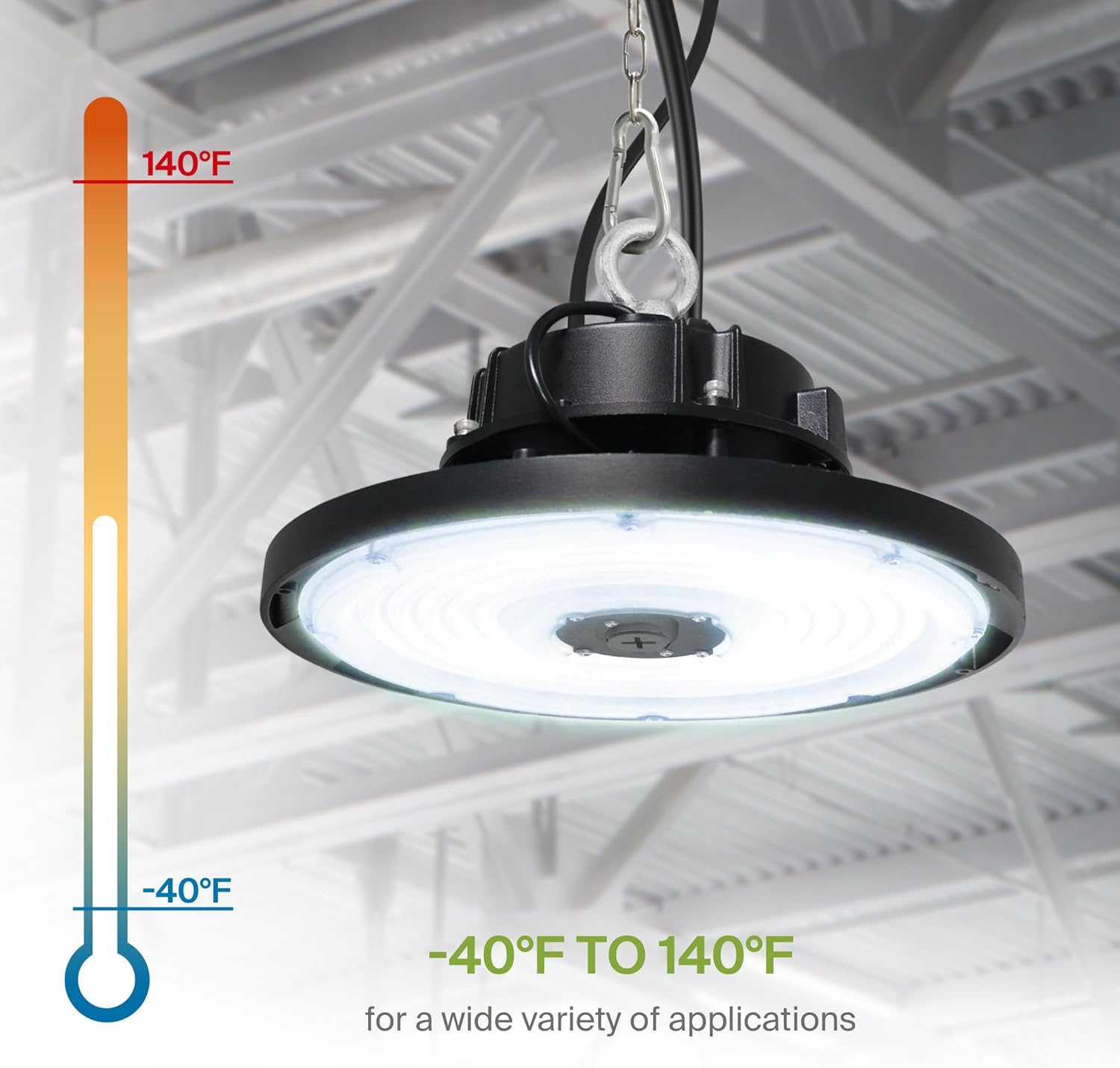 ASD LED High Bay UFO Light Fixture, Commercial Shop Lighting | Dimmable, IP69K Waterproof, DLC Premium, UL Listed | 150W 22000LM 5000K 277-480V | Warehouse, Garage, Workshop, Barn Lamp | Black