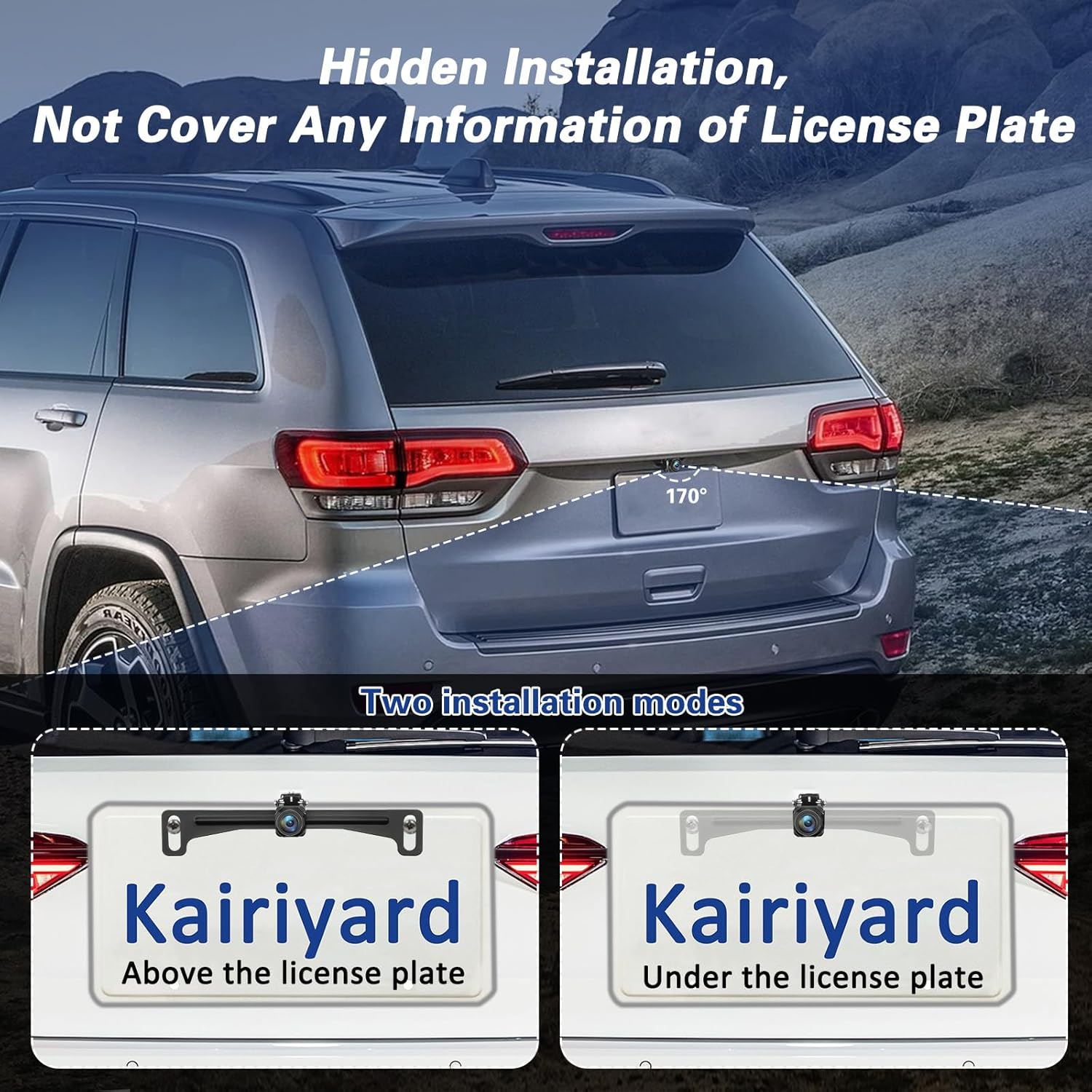 Kairiyard Backup Camera for Car, License Plate Back up Camera 170° Wide View Angel Vehicle Universal Reverse Rear View Camera Systems Waterproof for Cars Trucks Pickup SUVs RVs