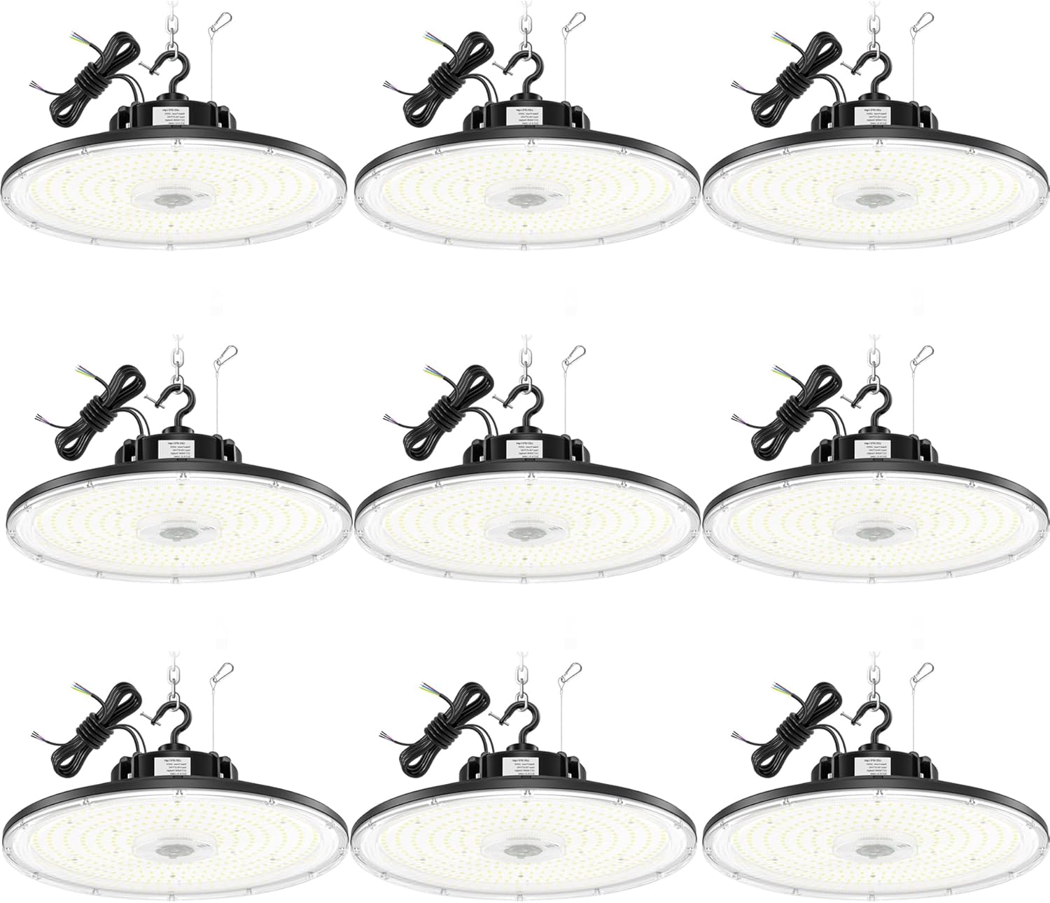 BBESTLED 9 Pack LED High Bay Lights 240W 33,600LM 5000K, Dimmable UFO LED High Bay Shop Light, UL DLC Listed, IP65 Waterproof Commercial Warehouse Lights for Gyms Garage Workshop Barn Factory