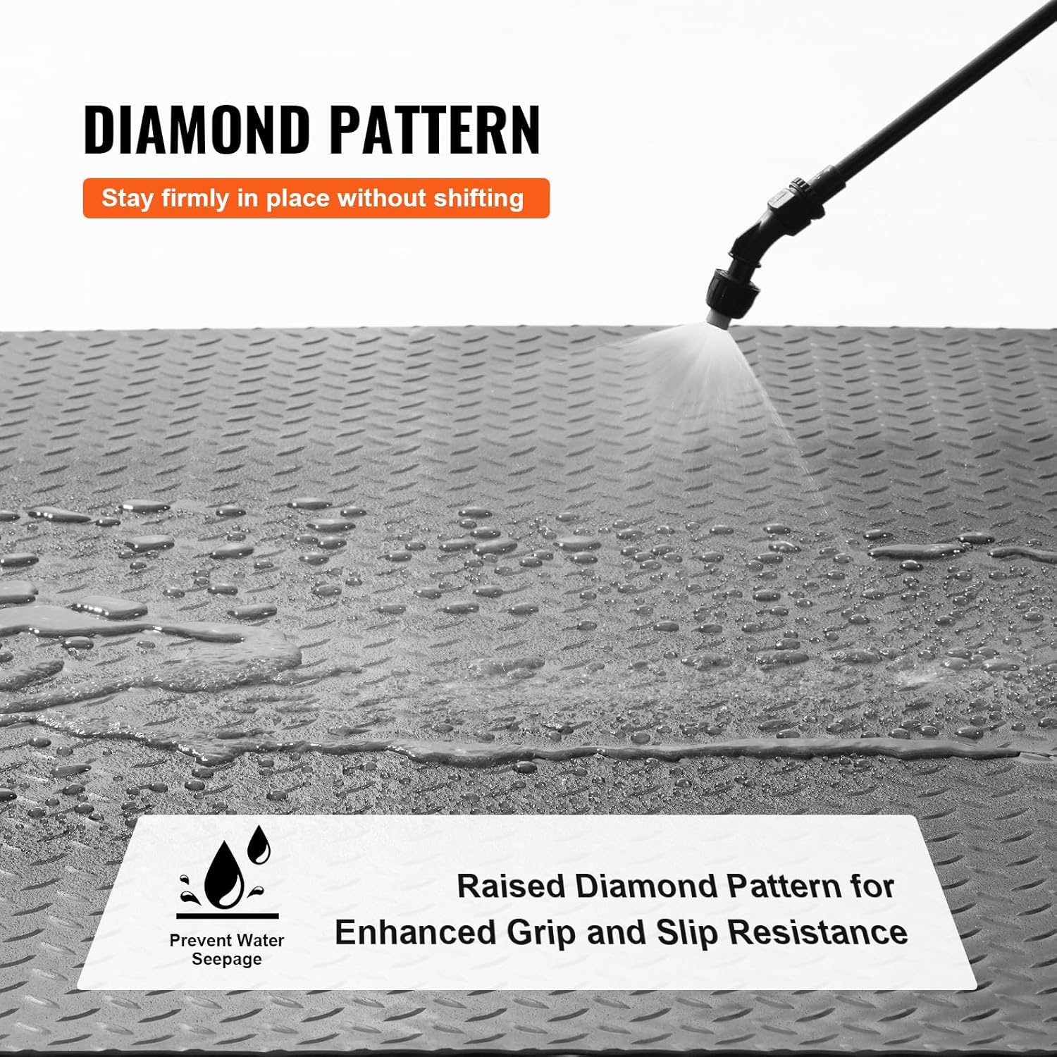- Waterproof and Leak-Proof: Our garage mat features a 3D diamond pattern backing to effortlessly handle water stains and spills, preventing them from seeping through. After use, your floor will remain spotless, looking as good as new.