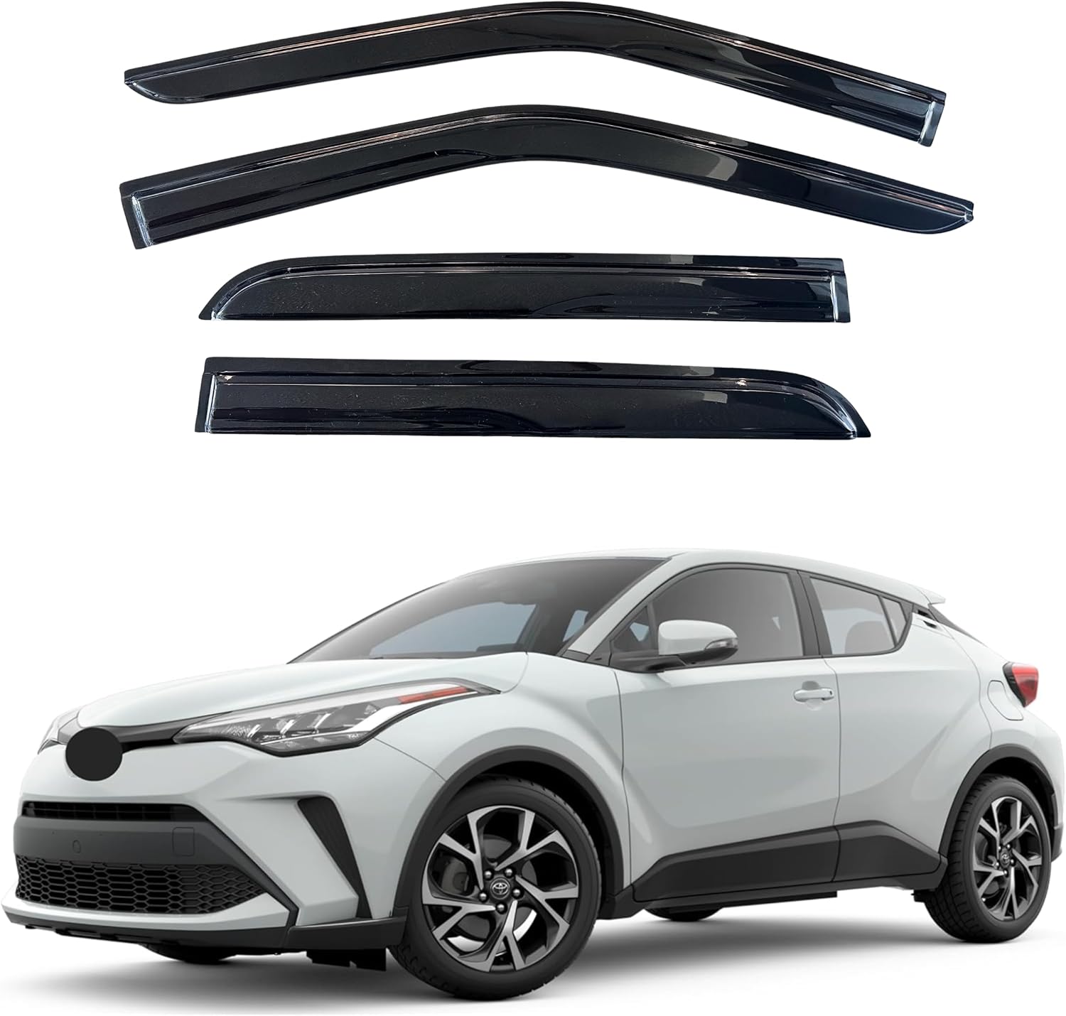 KPY Window Visor Compatible with Toyota C-HR (CHR) 2017-2022, 4PC Rain Guard Side Window Vent Deflectors Tape-On Mugen Style, 2017 2018 2019 2020 2021 2022