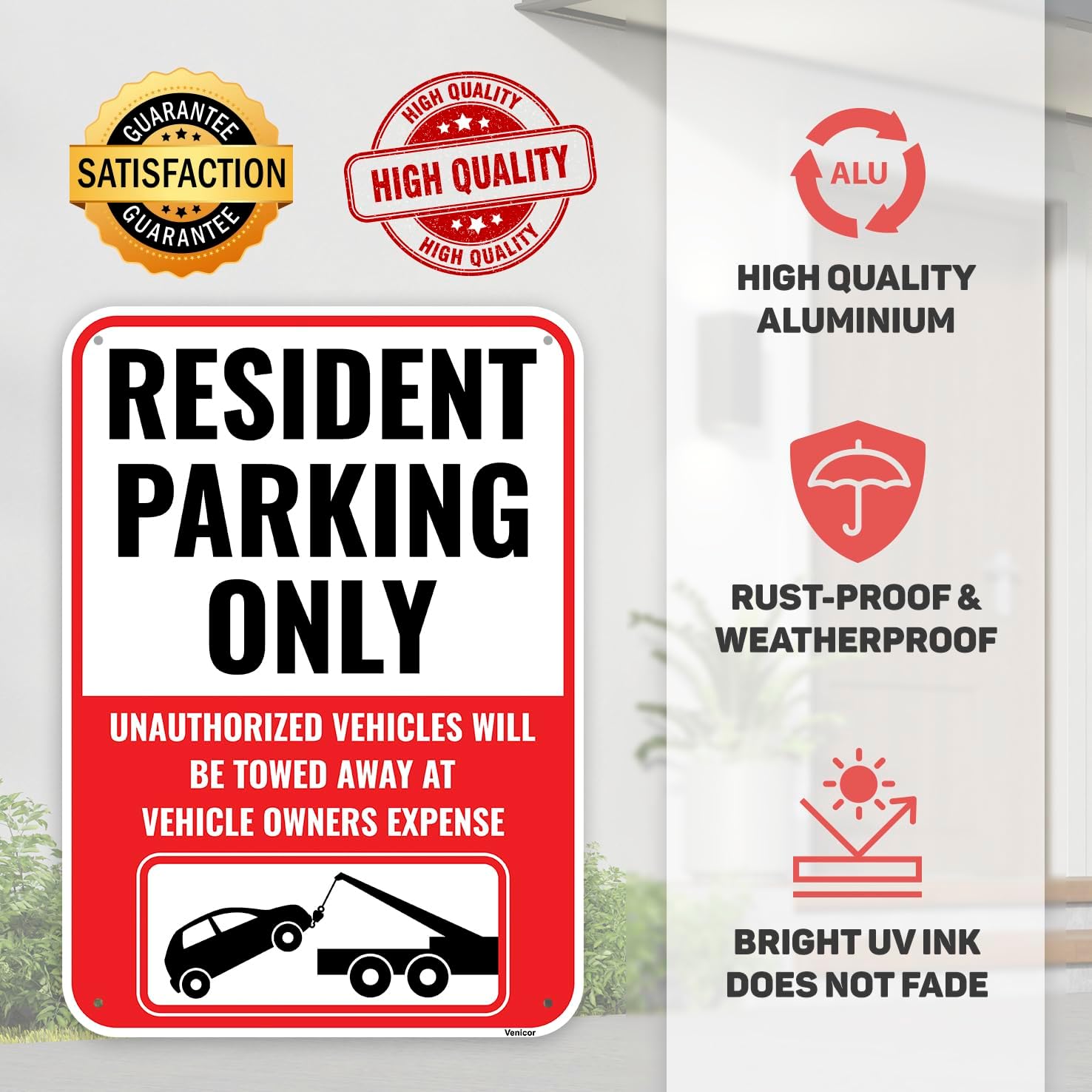 1PC Resident Parking Sign, 14 x 10 Inches - Aluminum - Private Tenant Parking Only Sign