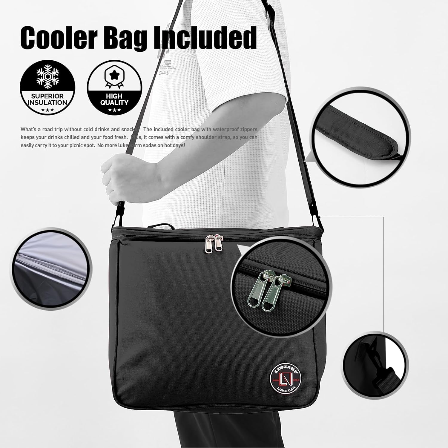 - Detachable Ice Bag: The trunk organizer includes a detachable ice bag, which can be carried on the back or shoulder. It keeps food warm or cold for 8-24 hours with its waterproof zipper and high-quality interior. Ideal for kayaking, beach trips, and camping, it keeps ice and drinks cool for a refreshing trip.