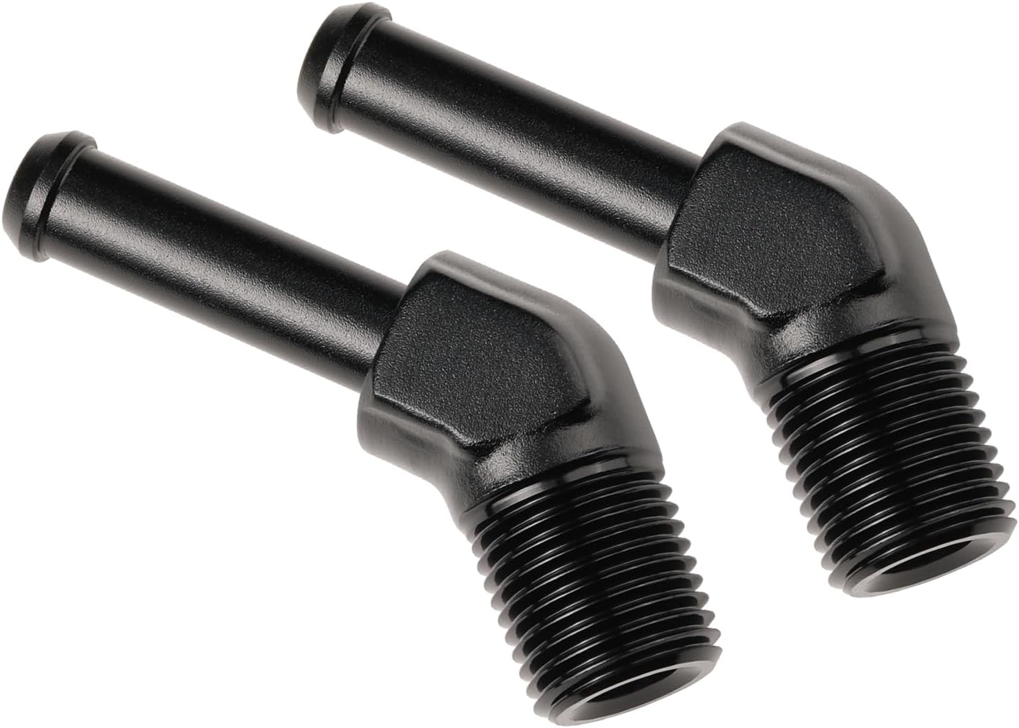 1/8 NPT Male to 1/4" Hose Barb Fitting Adapter 45 Degree Elbow Aluminum Black 2PCS