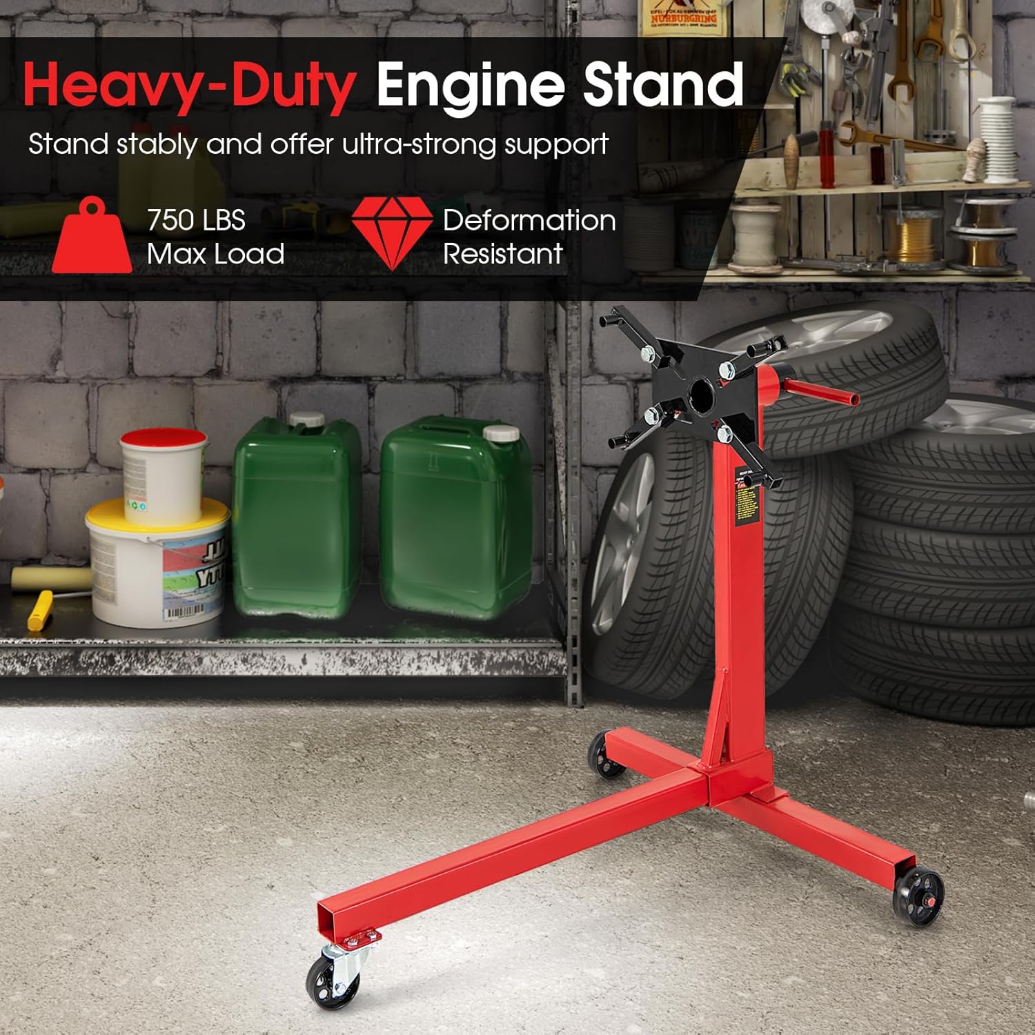 Goplus Engine Stand, 750 LBS (3/8 Ton) Motor Stand with Wheels, 360 Degree Rotating Head & Adjustable Arms, Heavy-Duty Metal Engine Holder for Garage, Auto Repair, Red
