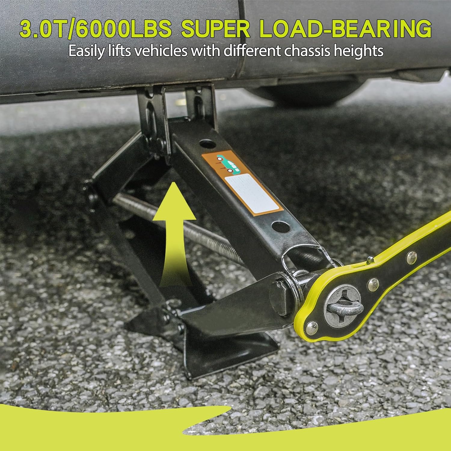 Scissor Jack Car Jack Kit 3 Tons (6,613 lbs) Universal Tire Jack Changing Kit - Extra Wide Base - Portable Car Emergency Kit with Lug Wrench for Sedan Truck SUV MPV (3T)