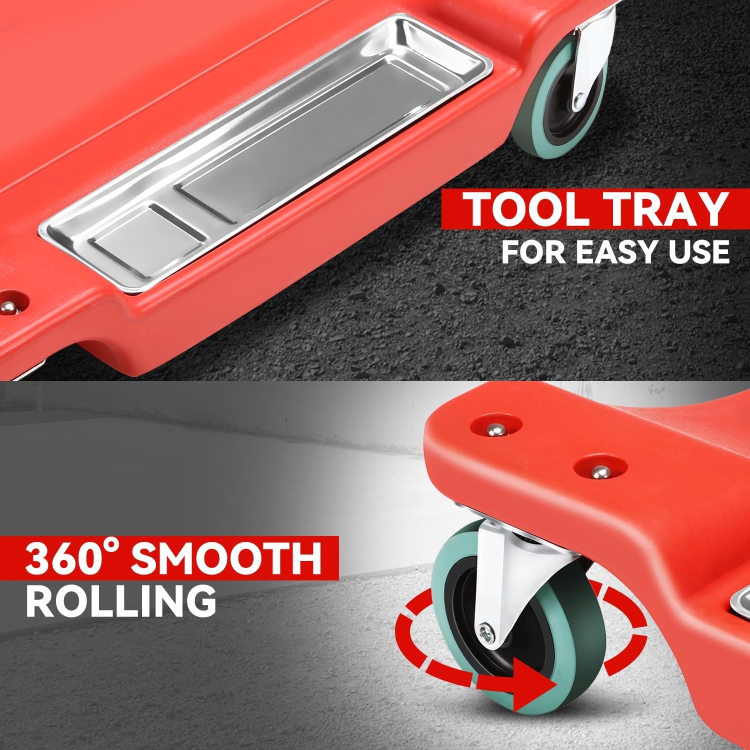 - Slide & Glide with Ease: Our 40" Plastic Creeper in Red ensures effortless automotive maintenance. With smooth and easy gliding action, you can effortlessly maneuver under vehicles for thorough inspections and repairs, saving you time and effort.