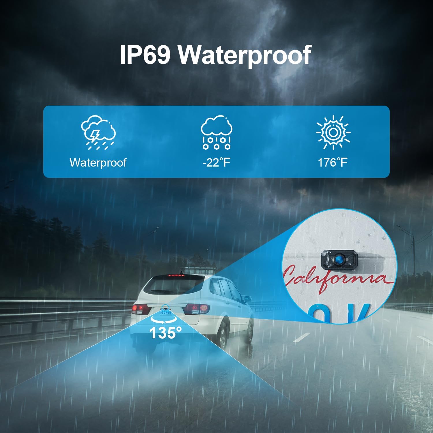 - IP69 Waterproof Liscent Plate Camera: The housing of license plate camera is made of ABS+PC metal raw material. Featuring with IP69 waterproof rating, it is more heat resistant and less likely to bend or break, which is able to work perfectly and provide clear images in extreme environments from -22ยฐF to 176ยฐF. It can tenaciously resist the baptism of wind, rain, dust, enhancing the safety index and service life