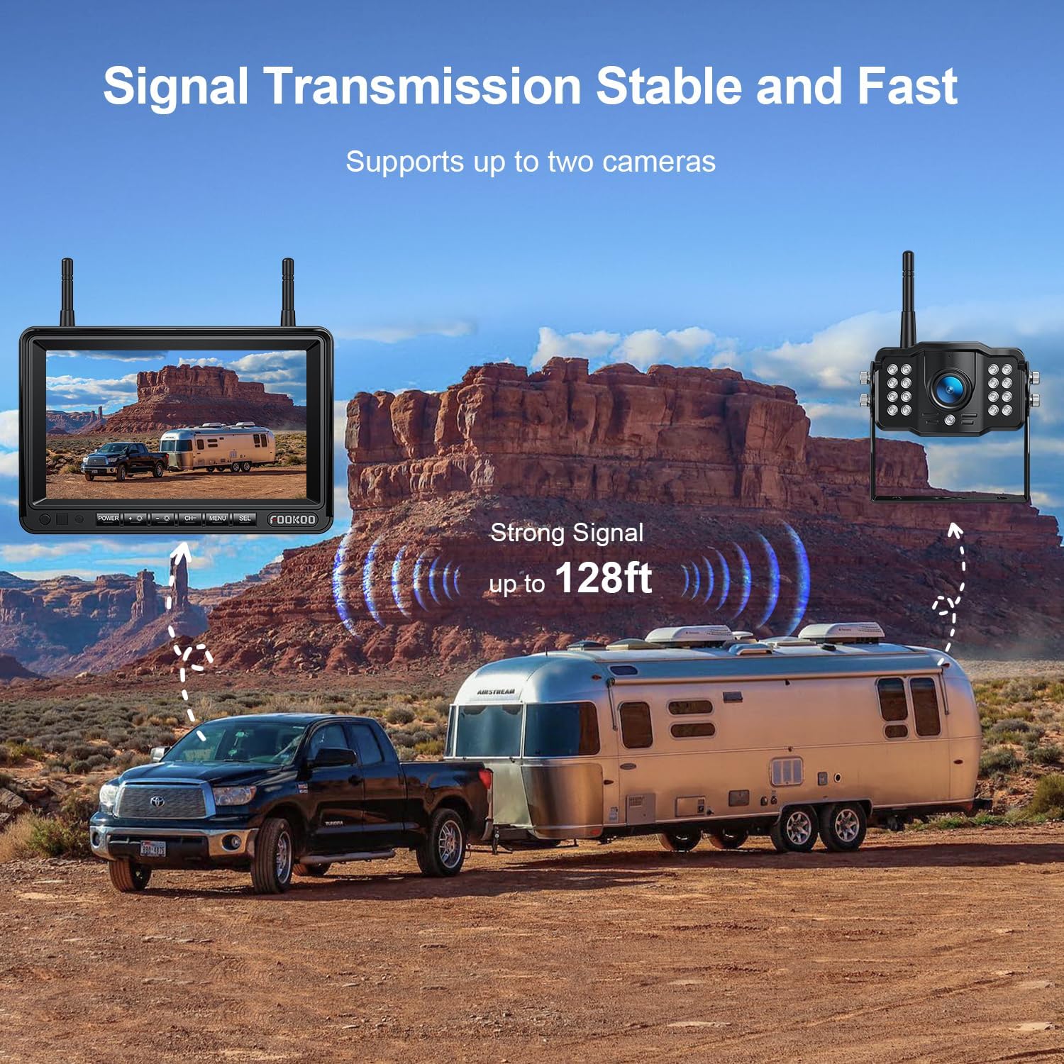 Fookoo HD 1080P 7-inch Wireless Backup Camera for Furrion RV, 7" Split Screen Monitor Plug-Play Easy Setup Rear View Camera DIY Guide Lines Waterproof for Truck RV Trailer Camper Motorhome - DW70101